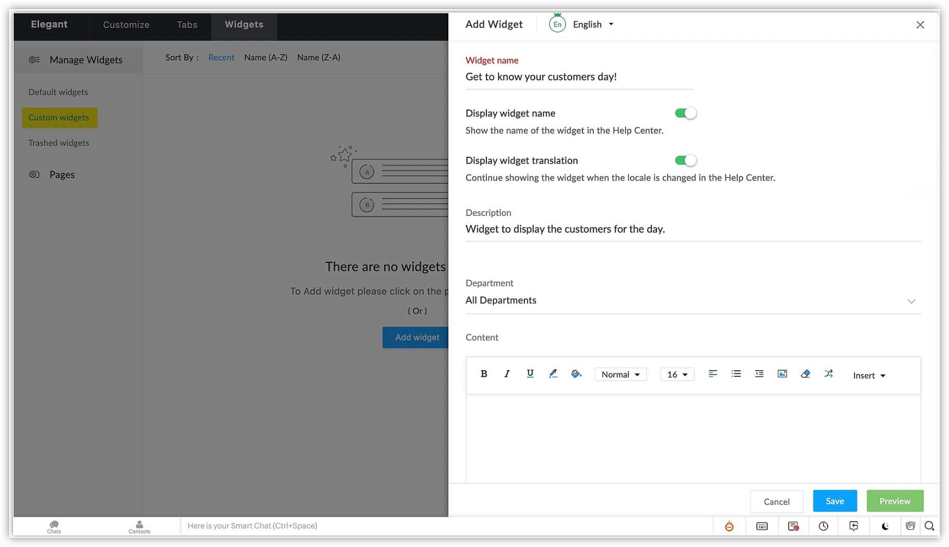 By default, All Departments will be selected. - Enter the Content to be displayed in the widget.