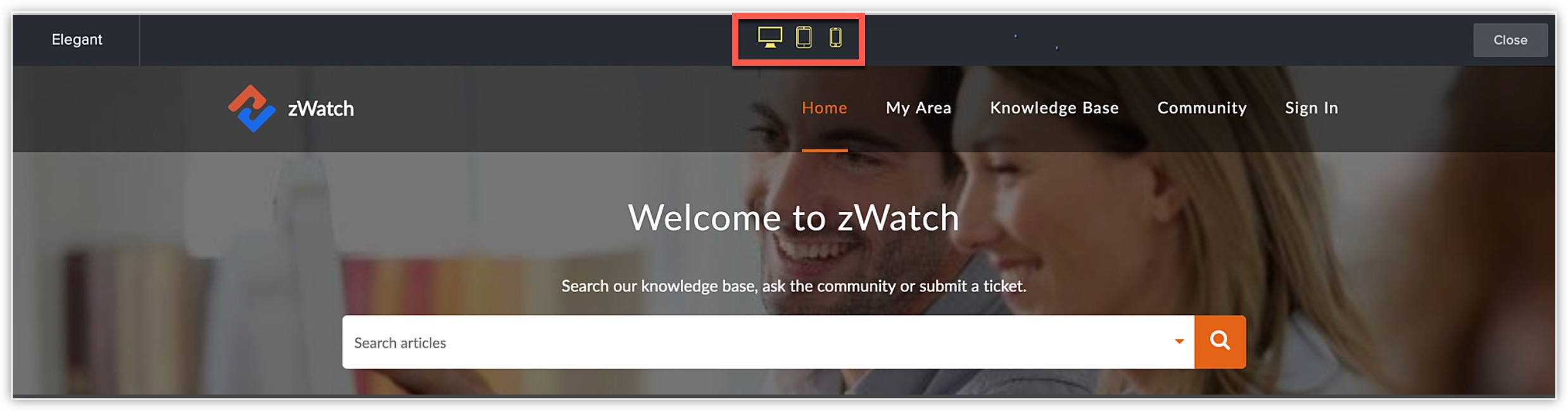 Zoho Desk provides four system defined themes for the help center: Elegant, Materialize, Flat, and Classic that can be customized.