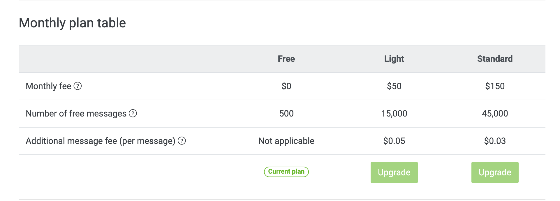 - In the free plan, only 500 messages can be sent. And no additional messages.