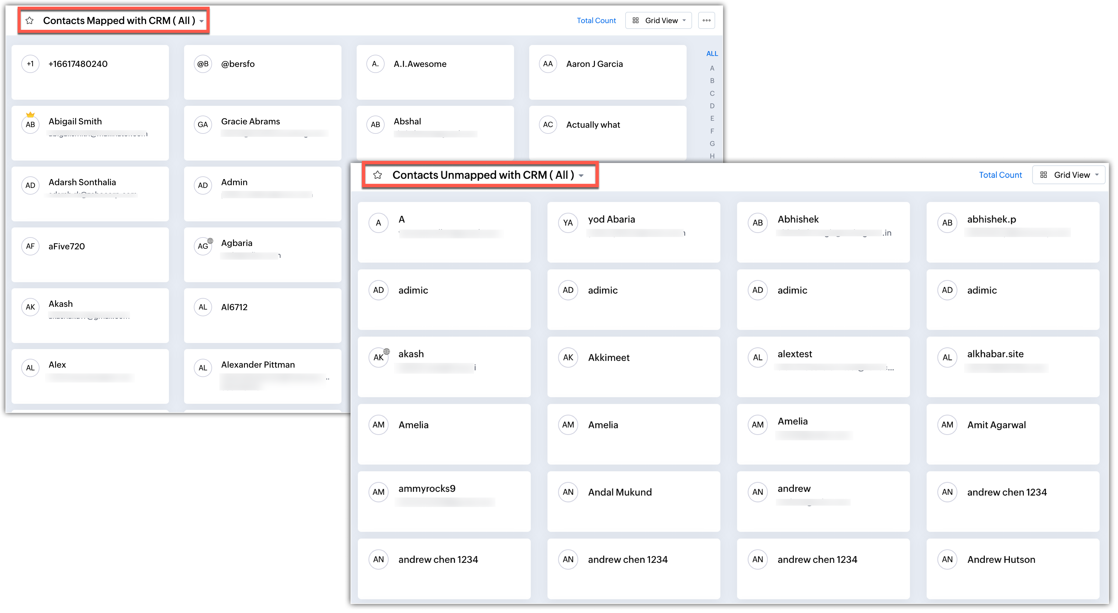 Accounts and Contacts modules in Desk are synced to the corresponding accounts and contacts module in CRM, which can be seen in Accounts mapped with CRM and Contacts mapped with CRM view respectively in Desk.