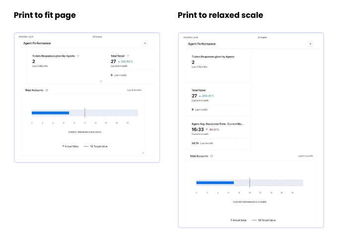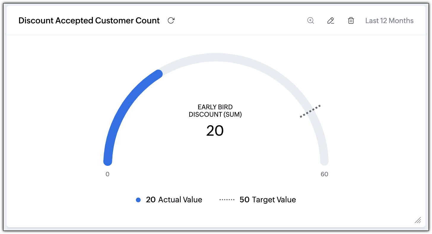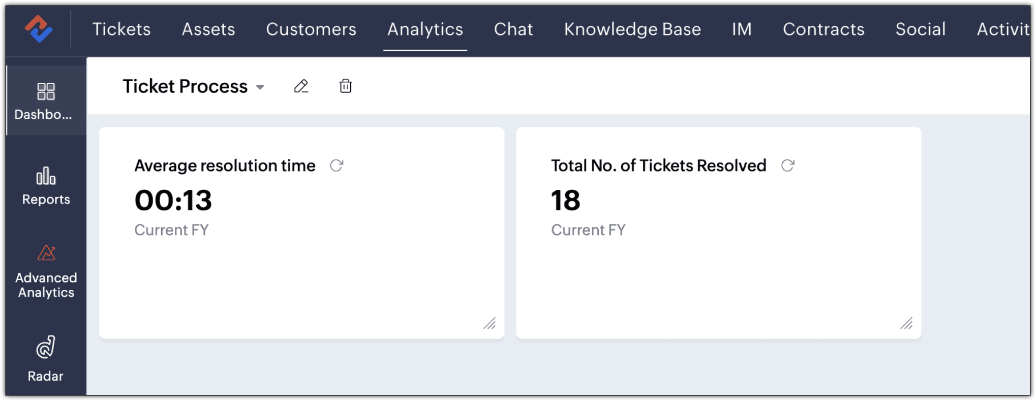 Targets can be set in Bullet Charts and Dial Charts that provide a visual representation of progress toward achieving a specific target. For example, a target to resolve 50 tickets in a month or monitor an increase or decrease in the response time.