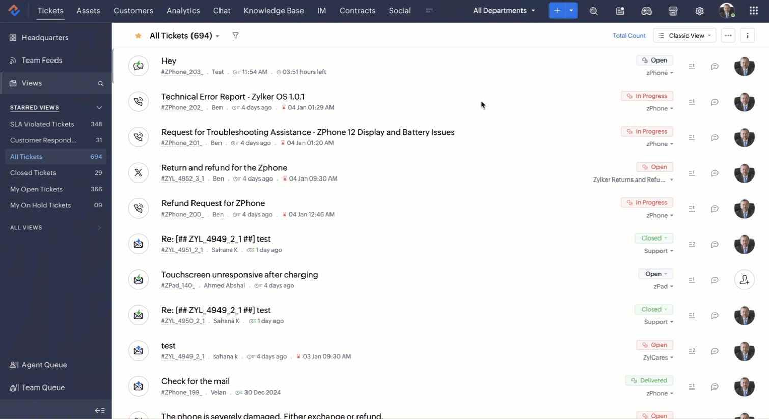 Agent Performance: Indicators on how agents perform, such as the number of tickets resolved, number of tickets reopened, and number of tickets with good customer happiness ratings.
