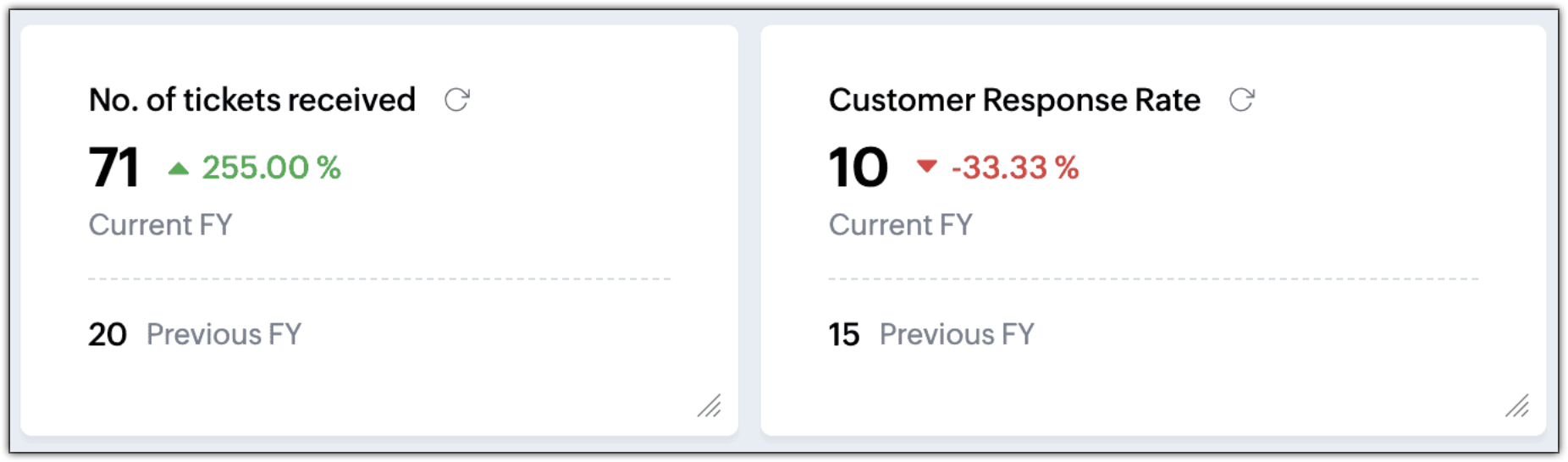 For example, you can compare the number of tickets received in the current fiscal year to the previous fiscal year. A reduction in the number of tickets received is generally encouraged, as it indicates fewer customer complaints.