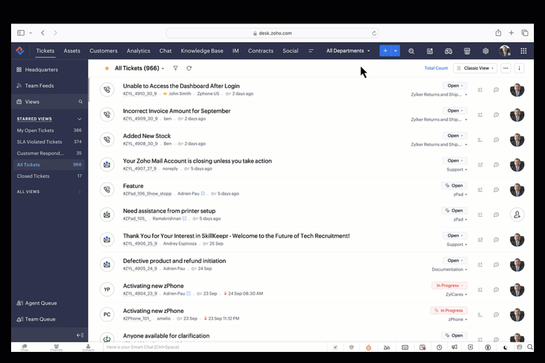 A ticket can be moved to only one department. | A ticket can be shared with upto 10 departments. |