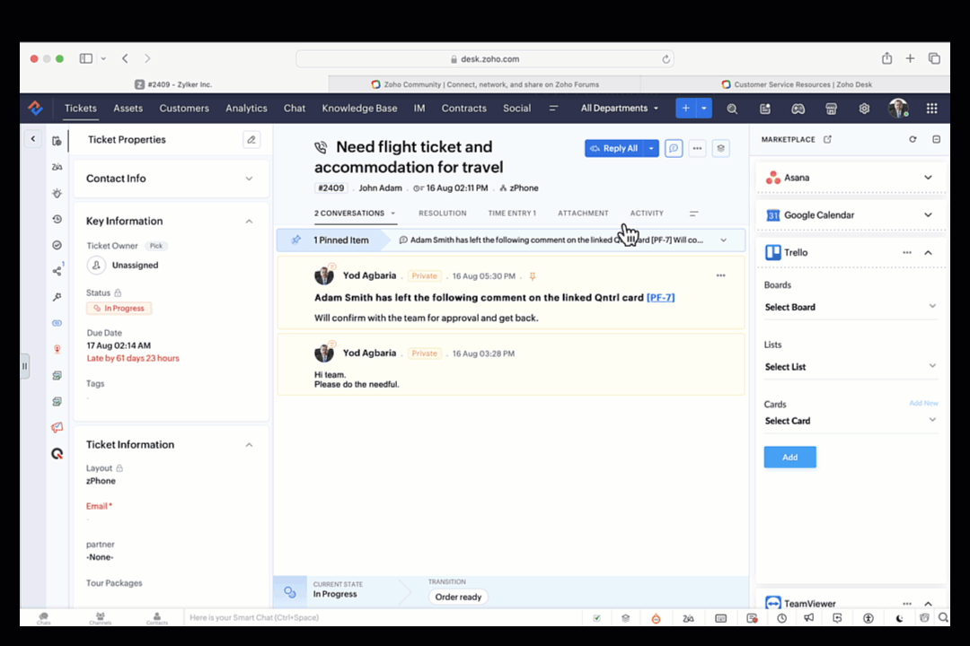 Ticket is transferred to another department. | Both departments can access and work on the ticket . |