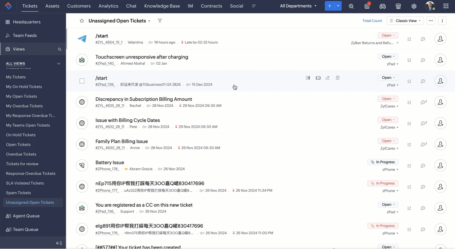 Agents can use AI based services to view essential details about a ticket that help them understand the context, draft better responses, and improve customer satisfaction. Insights (Tone, Sentiment, Key topics) Summary Reply assistance Zoho Desk ...