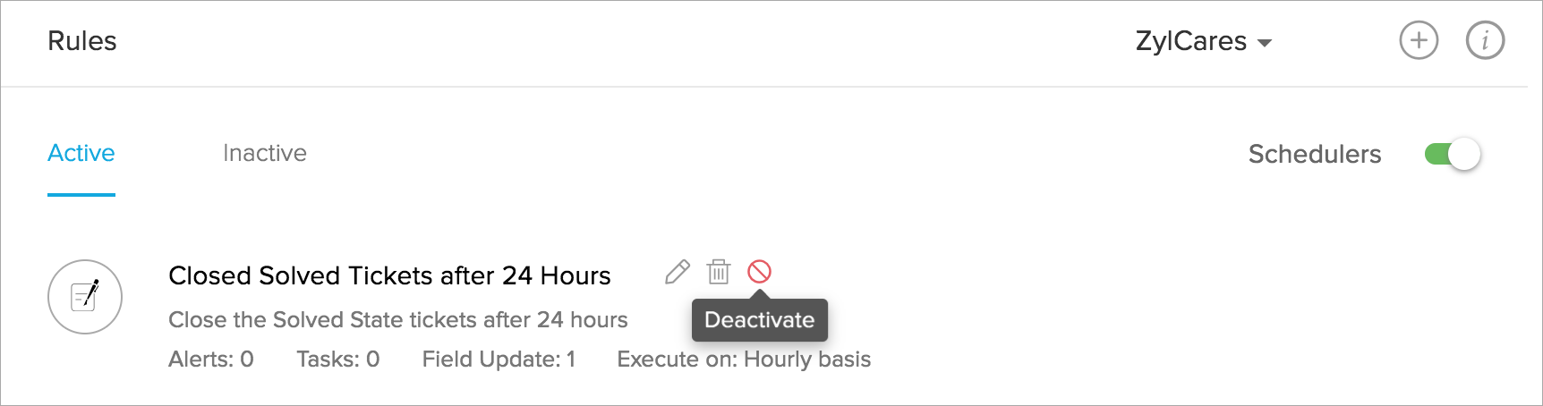 The time-based rule will be deactivated instantly. You can head over to the Inactive Rules List and click the Activate icon (