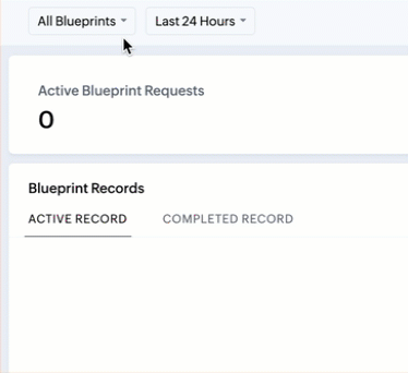 This component displays the tickets that are currently going through the blueprint that are categorized under active records and the ones that have completed or exited the blueprint process.