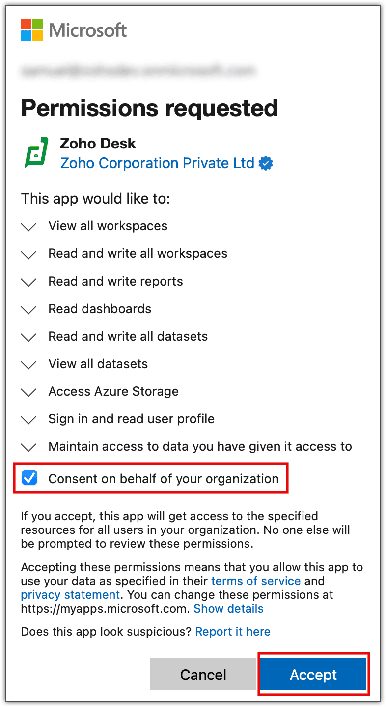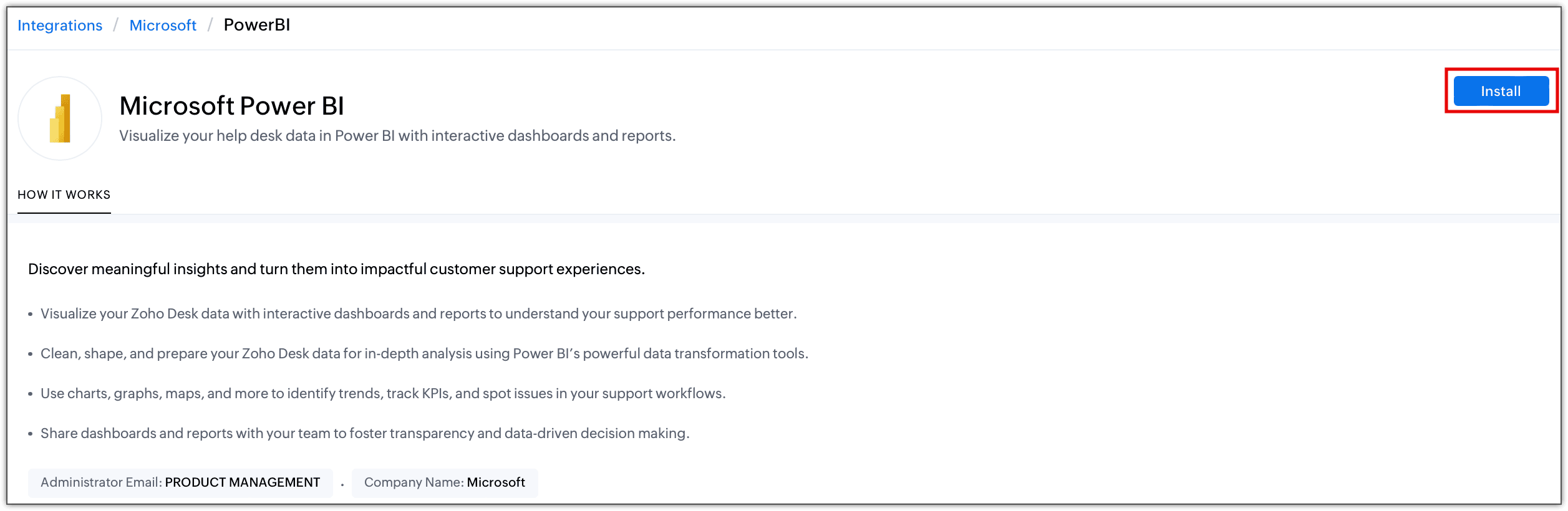 PermissionUser must have admin permission in both Zoho Desk and PowerBI to perform this integration.