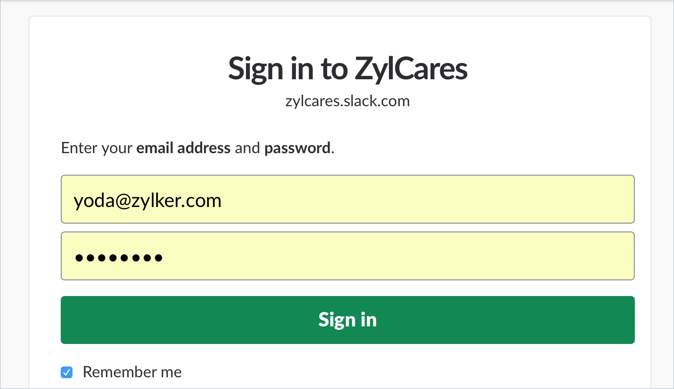 On this page, enter your Slack login credentials and click Sign in.