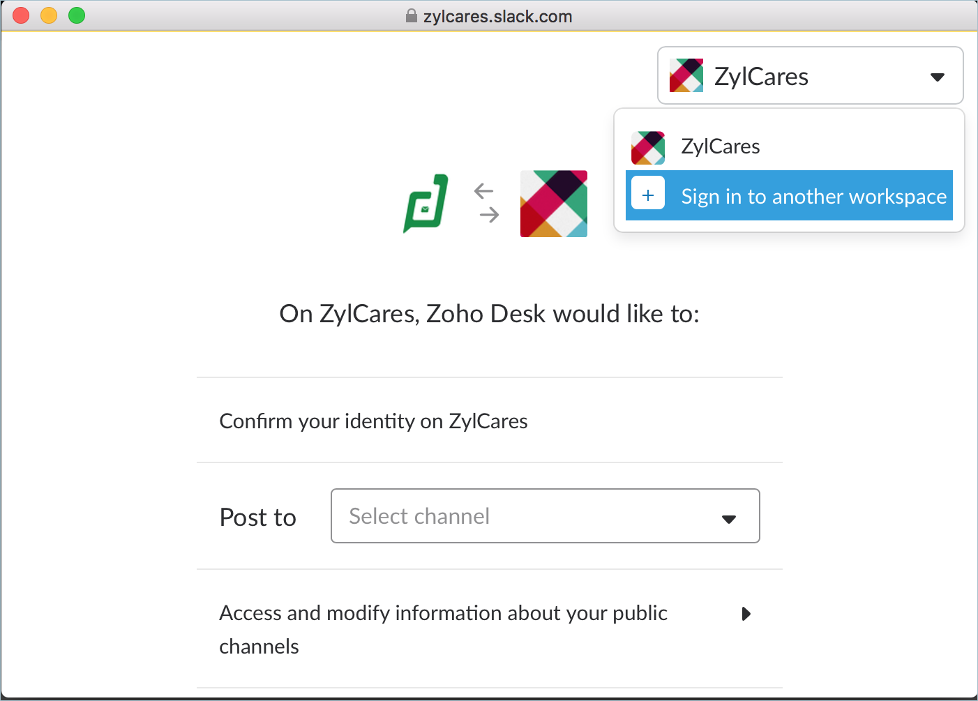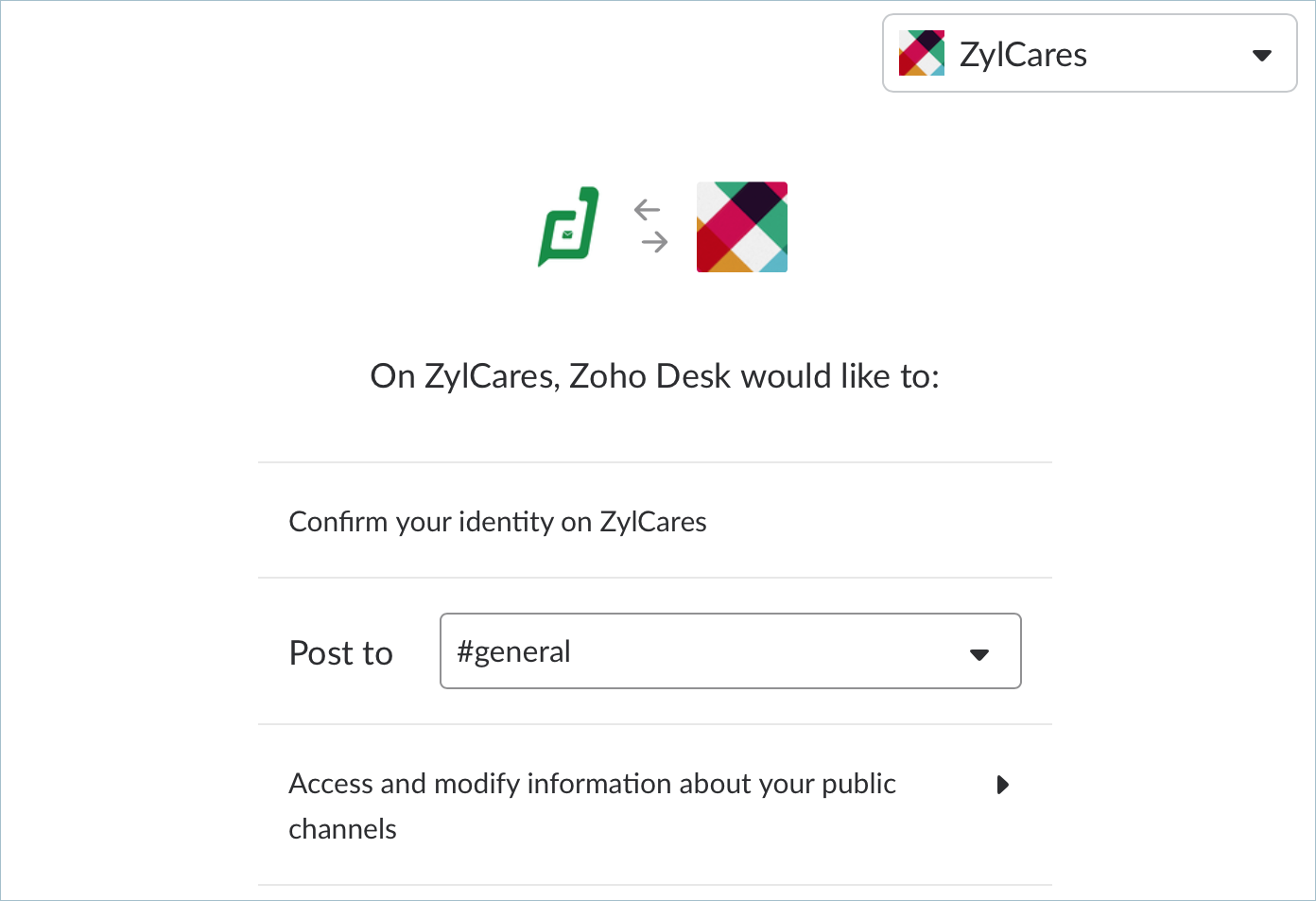 Your Slack workspace and Zoho Desk portal are now integrated. Notifications from your Zoho Desk portal will be delivered to the channel you chose in the app permissions page.