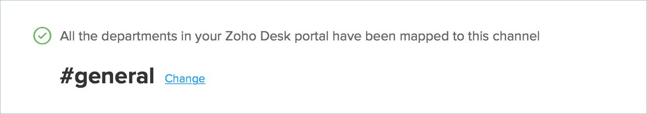 If all your Zoho Desk departments are mapped to a single Slack channel and you want to change just the channel, click Change.