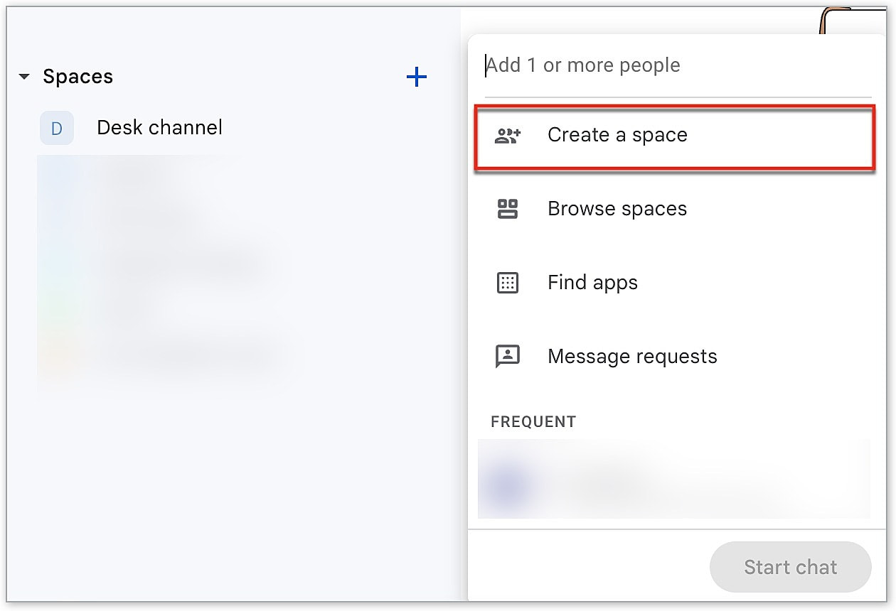 Creating a space in Google Chat