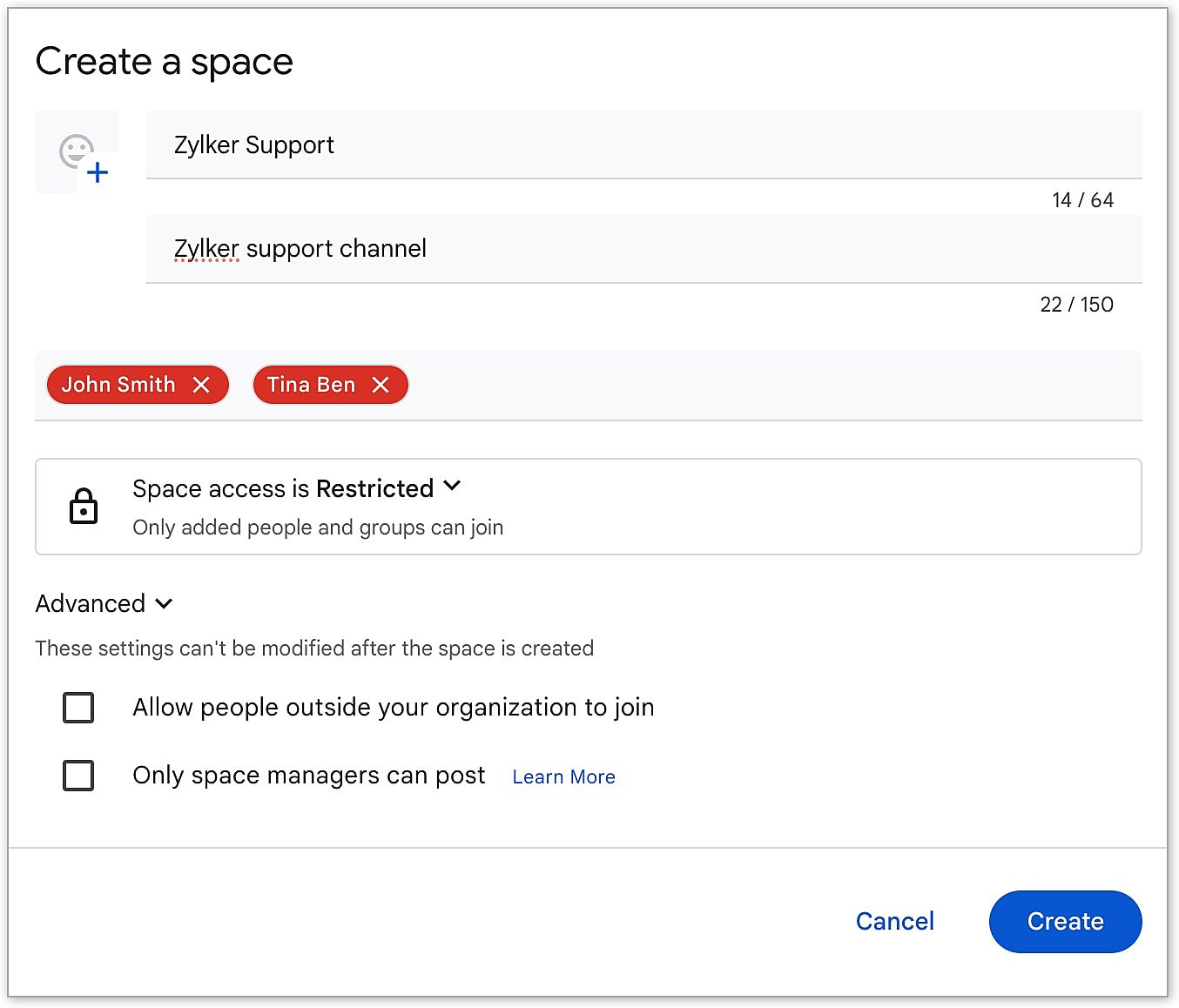 - To allow only space managers to post, check Only space managers can post.