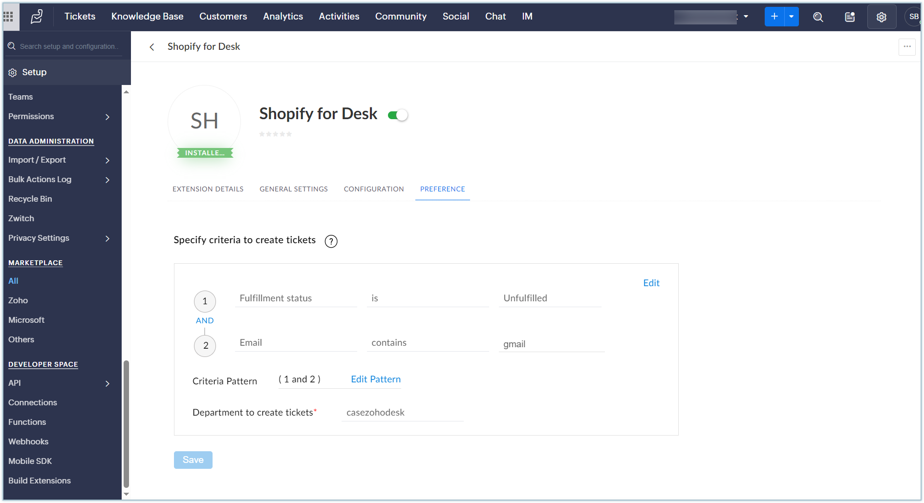 Under Preferences, define the criteria based on which the tickets needs to be created and select a department.