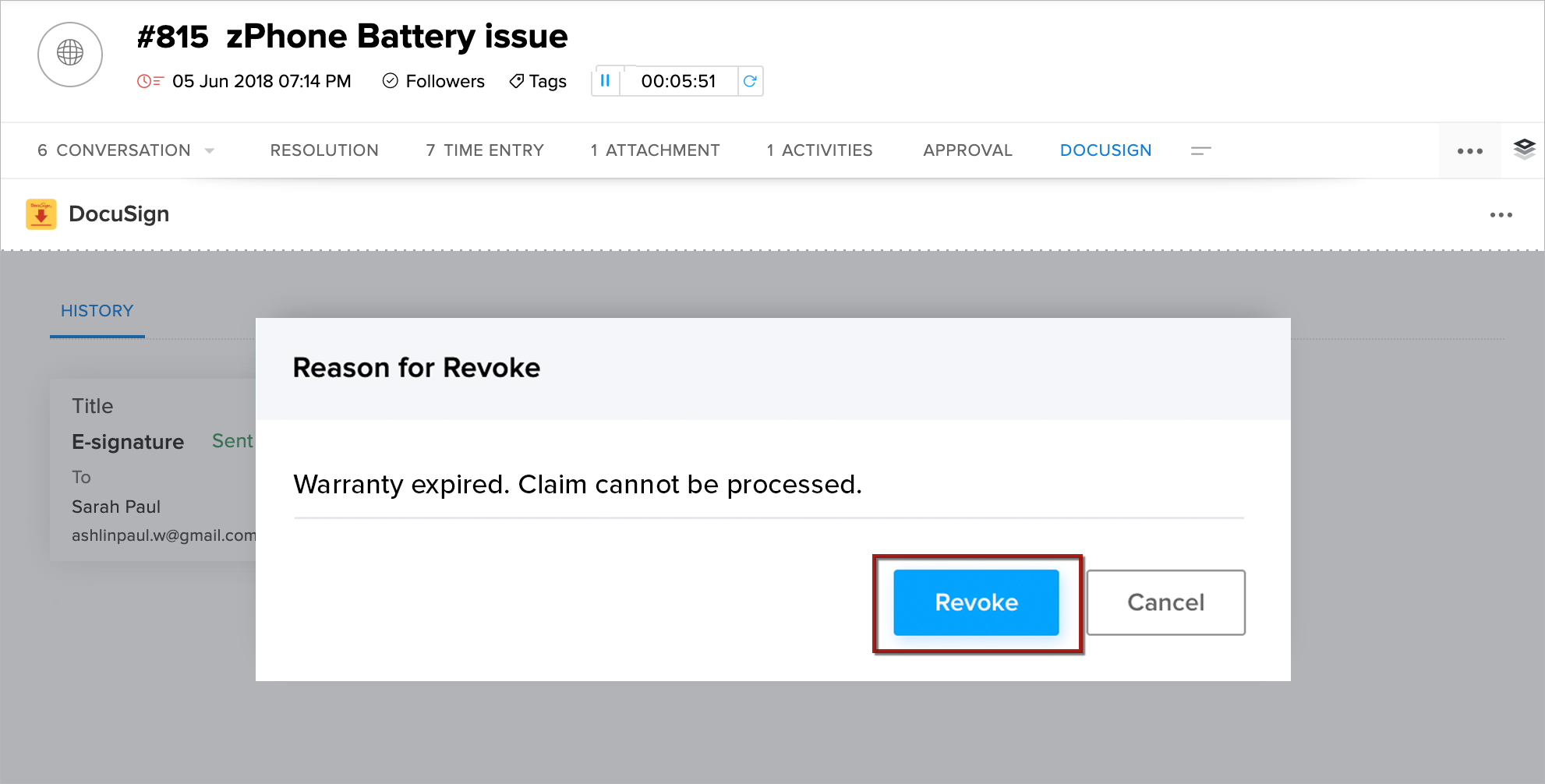 Enter the reason for revoking it and click Revoke.