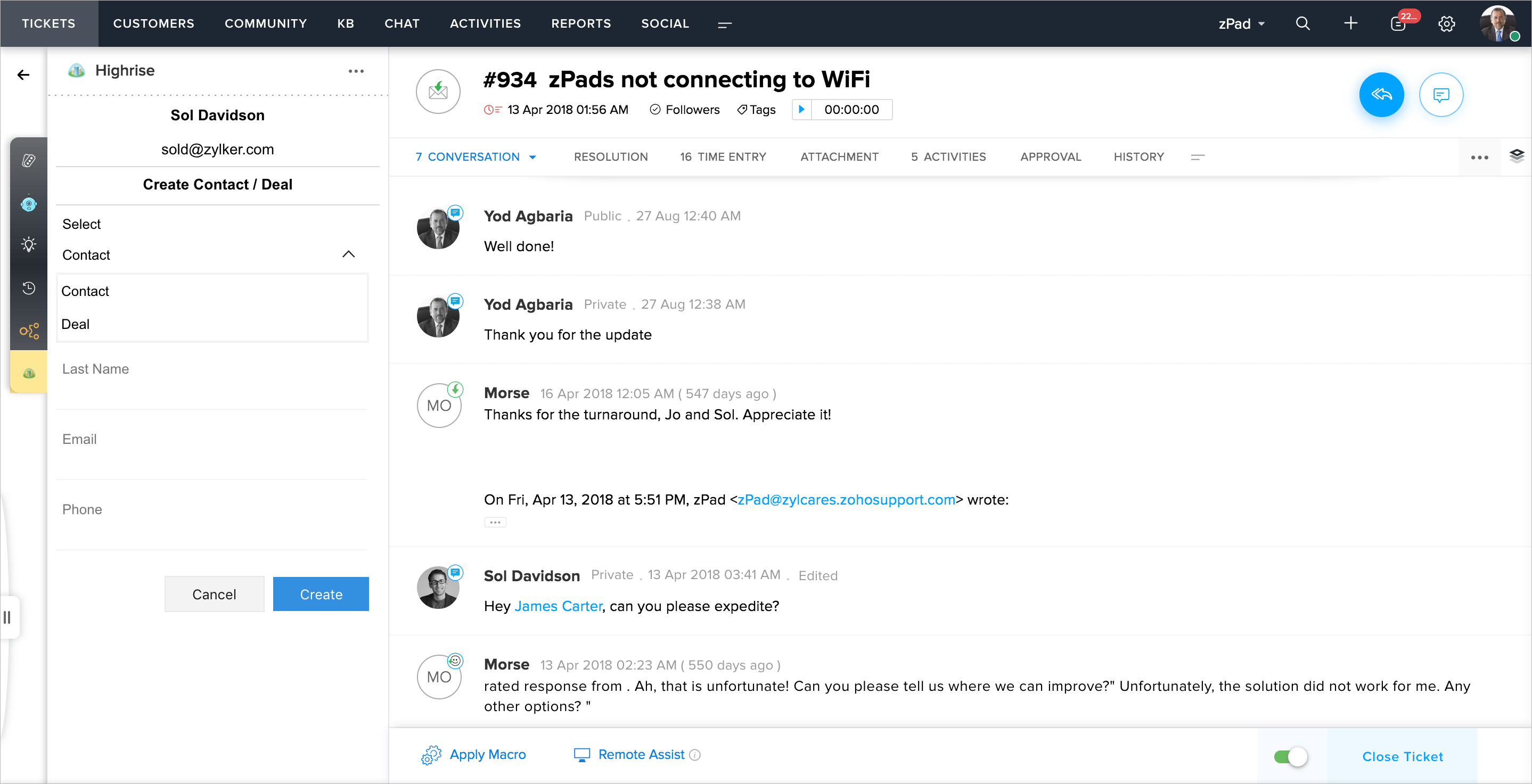 Highrise for Zoho Desk | Zoho Desk Knowledgebase