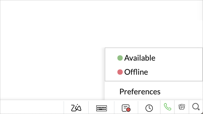 The Amazon Connect status controls your availability to answer calls inside Zoho Desk. There are two statuses: