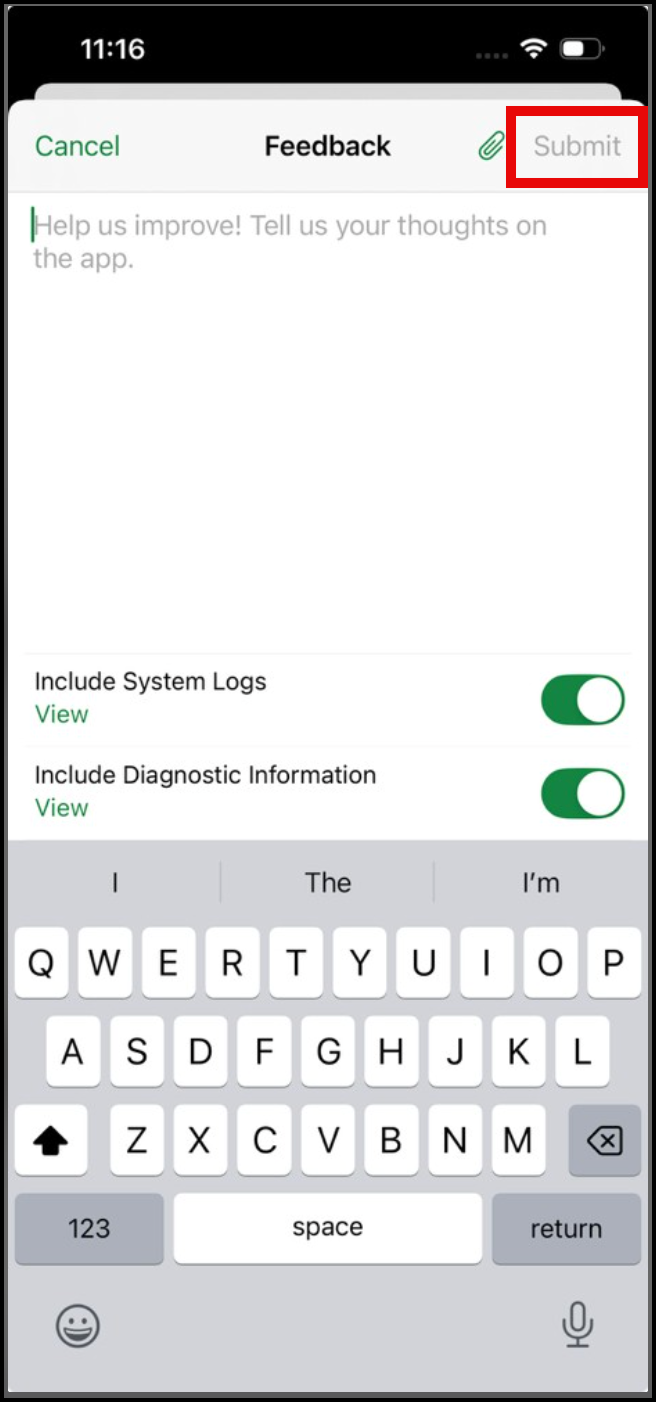 - Tap Submit at the top-right corner of the screen to send the feedback.