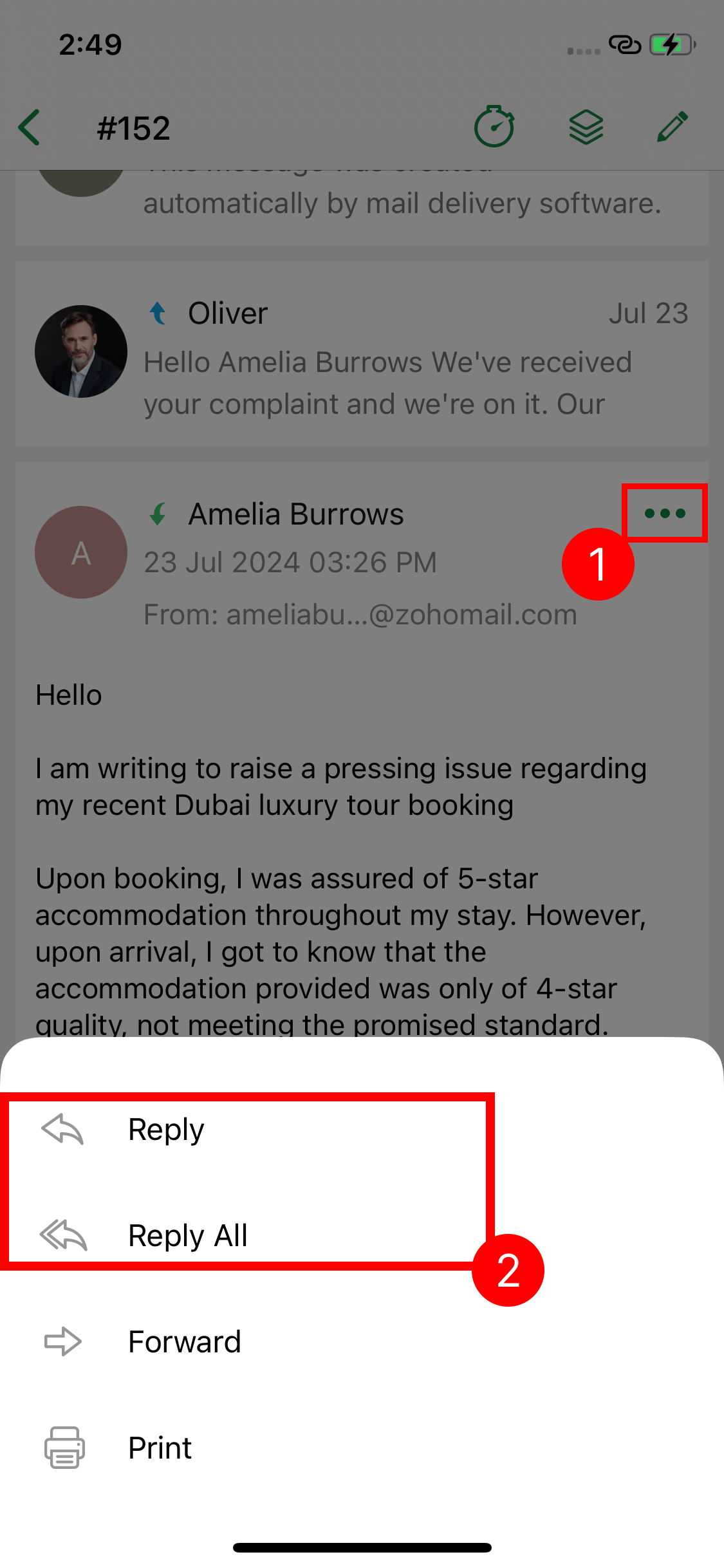 Zoho Desk also has a Comments View where you can see internal team notes and discussions related to the ticket. It helps you understand how your team is working together to solve the customer's issue.