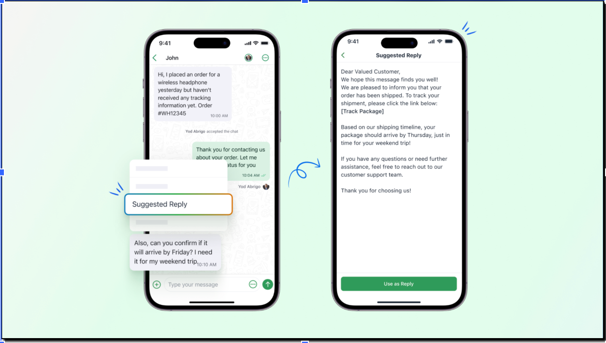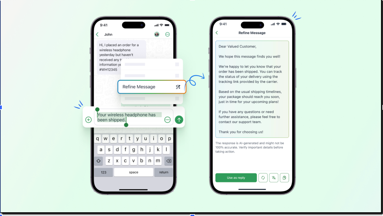 - Tap Use as Reply to use the generated content as a reply to the ticket.