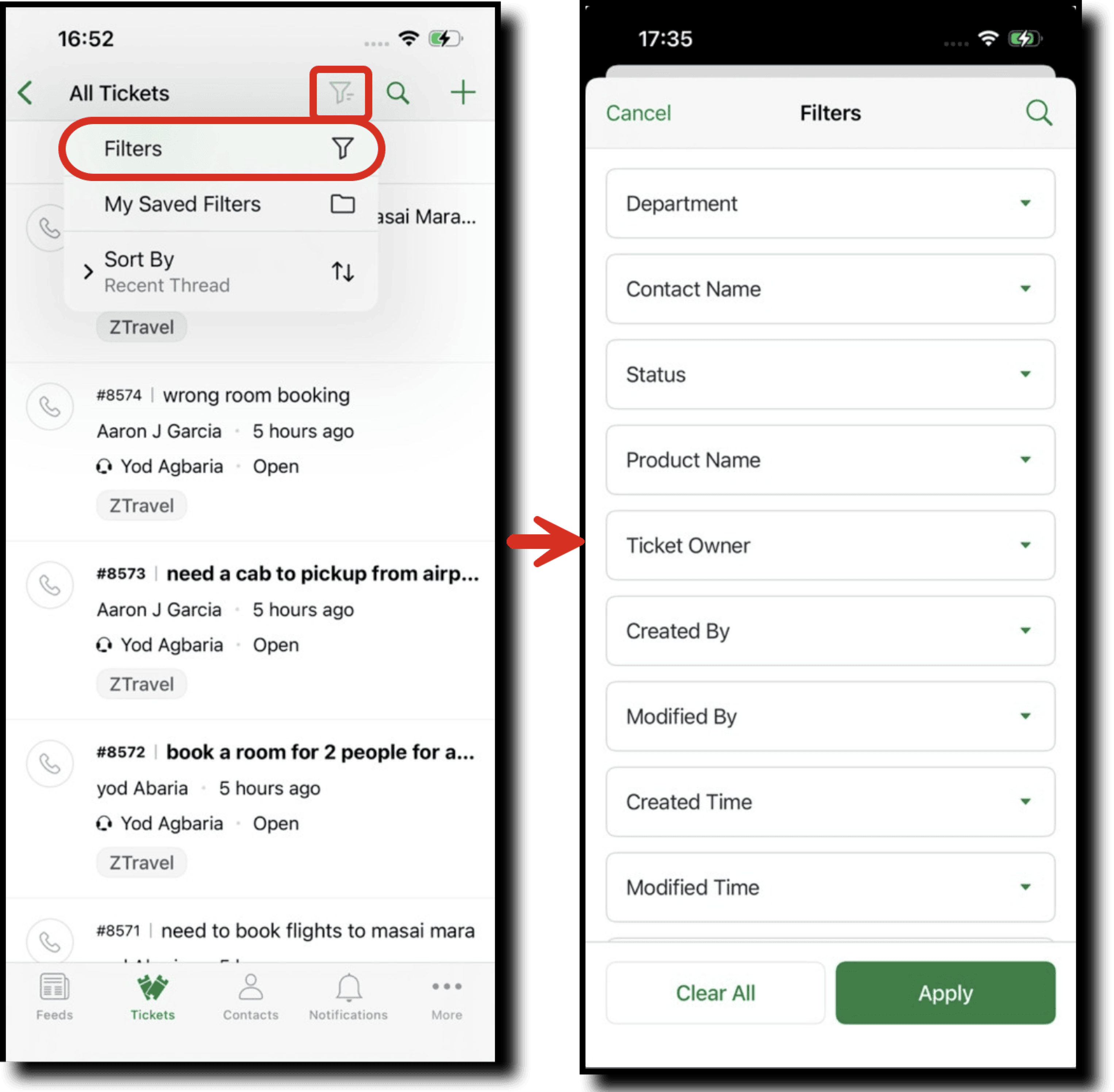The filtered tickets will appear in the tickets view page.