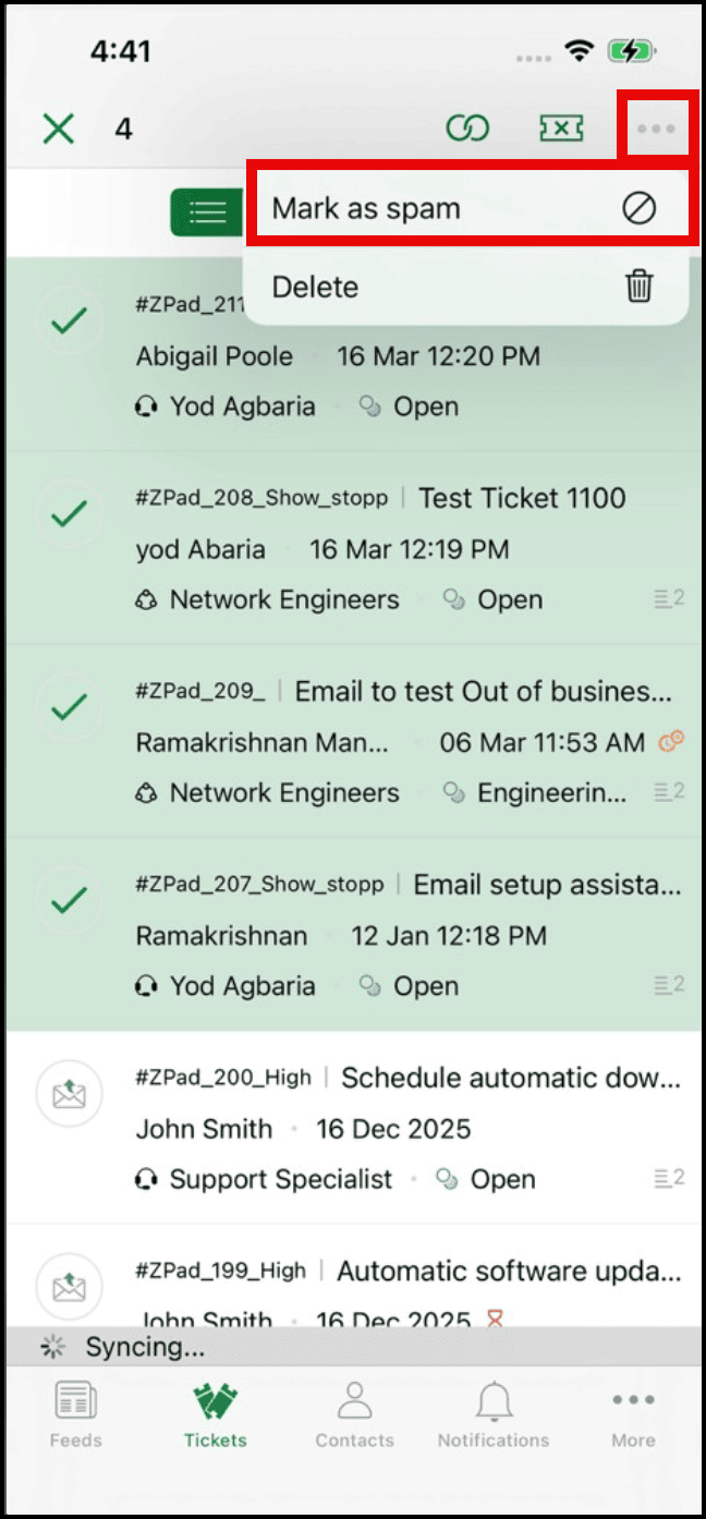 Marking tickets as spam