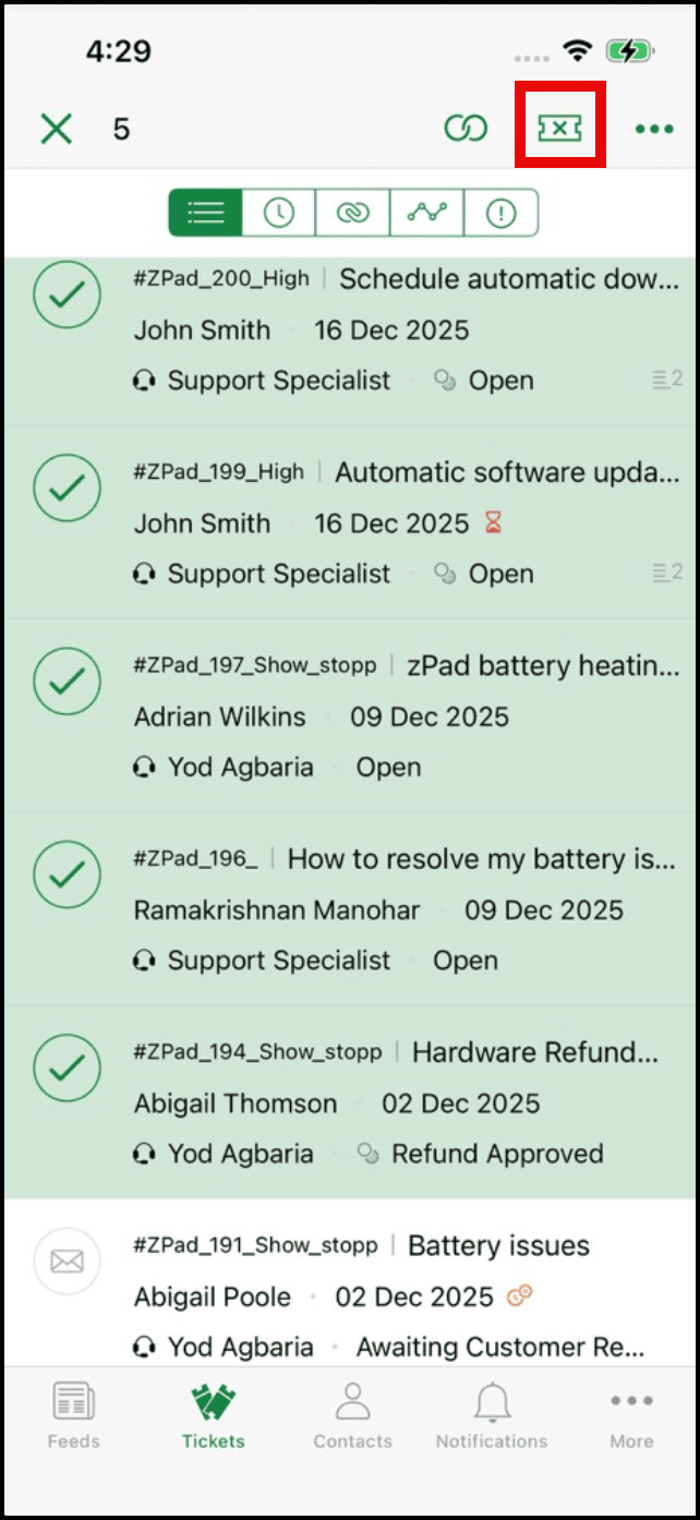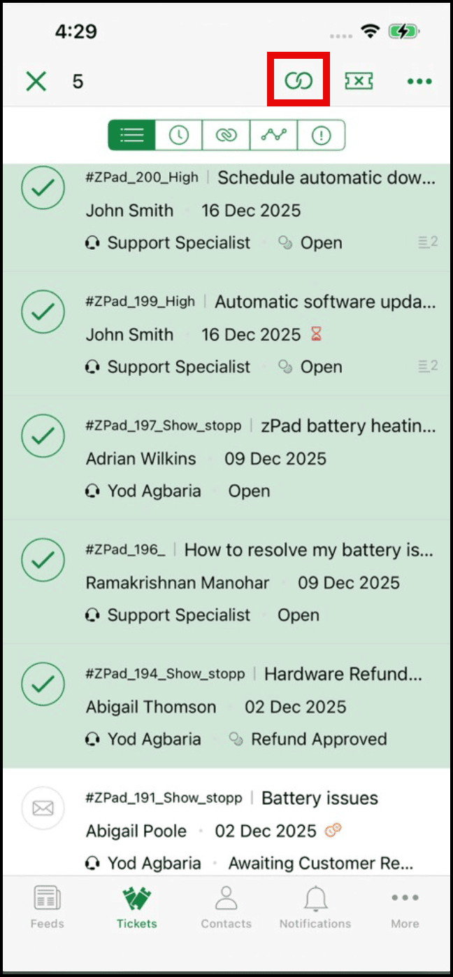 - In the Tickets page, tap the channel icon in the tickets to be merged.