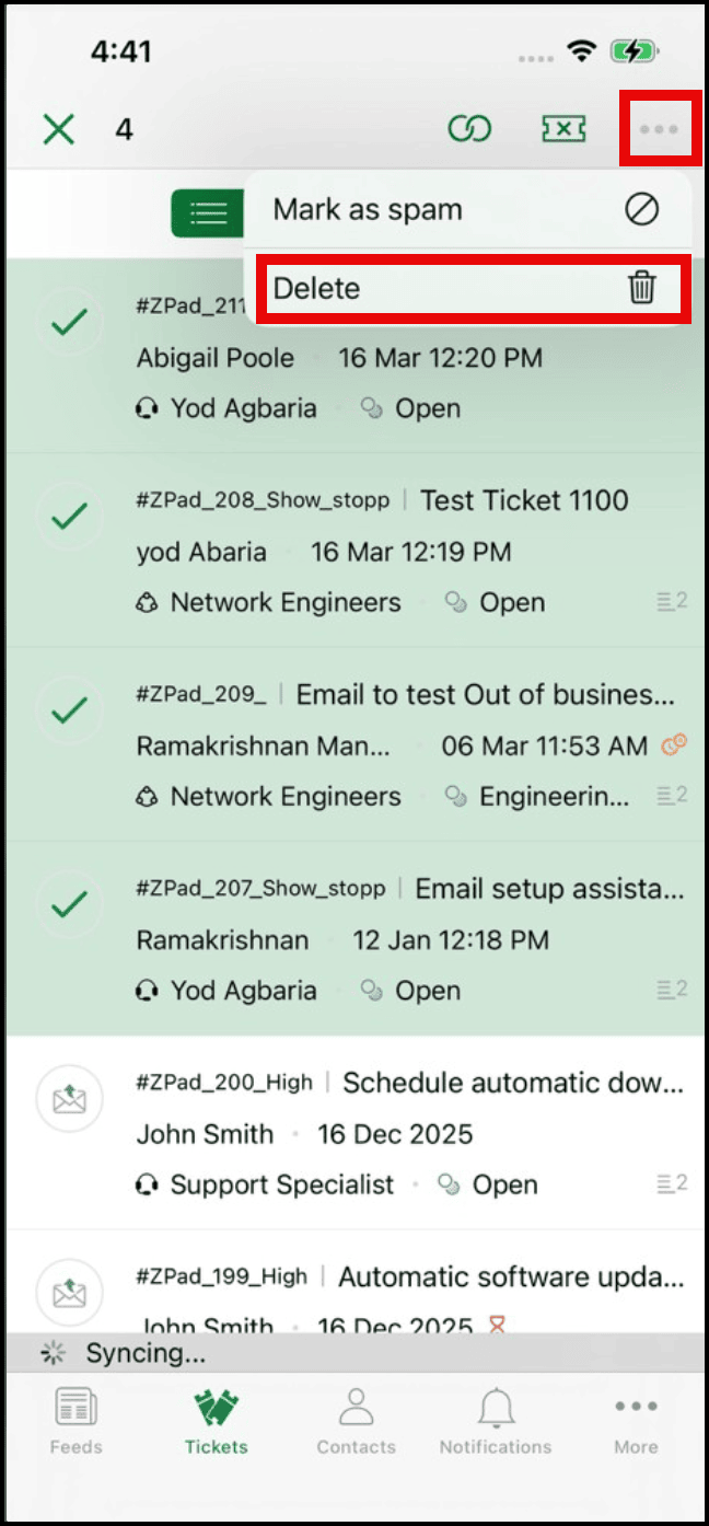 - Tap the More icon in the top navigation bar and select Delete.