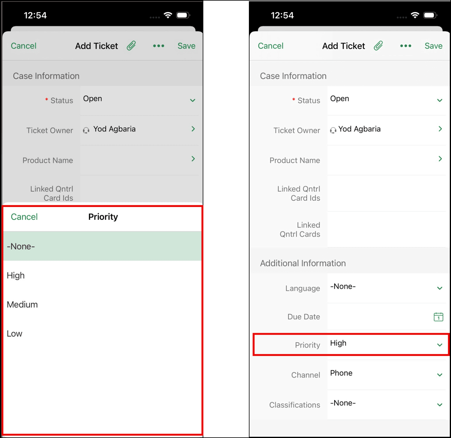 - In an open ticket, tap the existing priority and change it to the required priority status from the list.