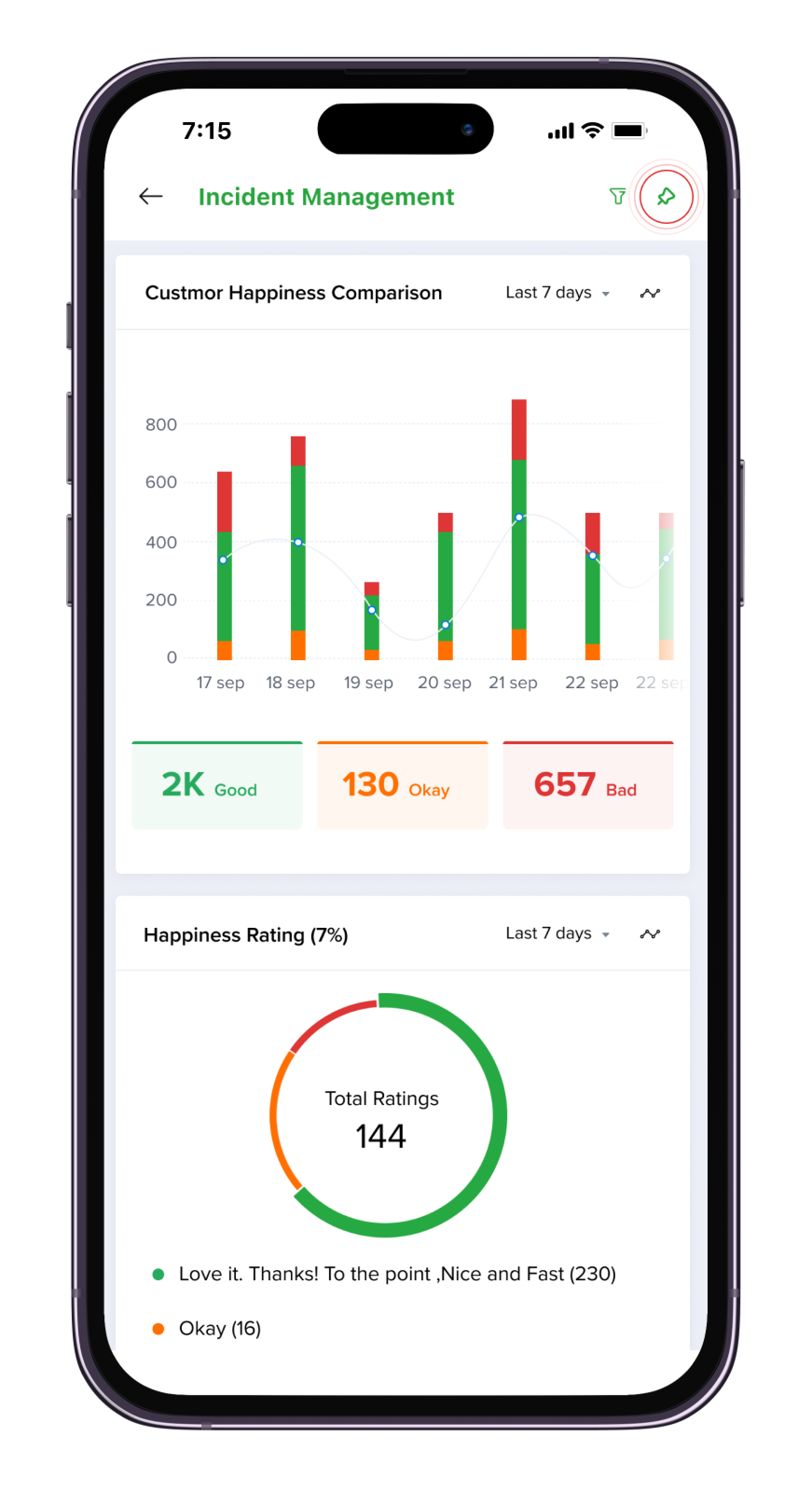You can pin records such as tickets, customers, and activities, as well as important screens like dashboards and ticket views to the Radar home. This will enable you to access these items as soon as you open the app.