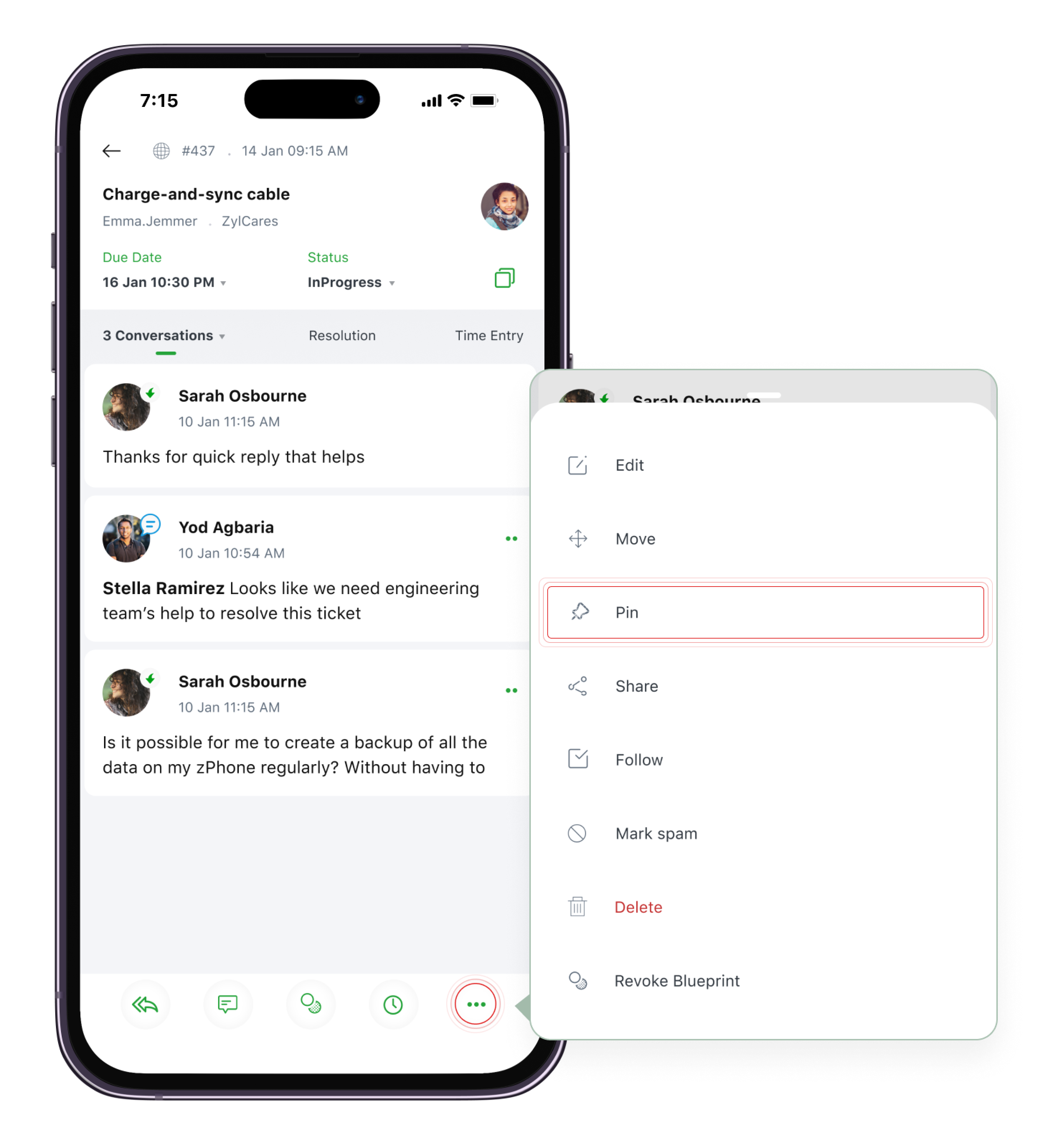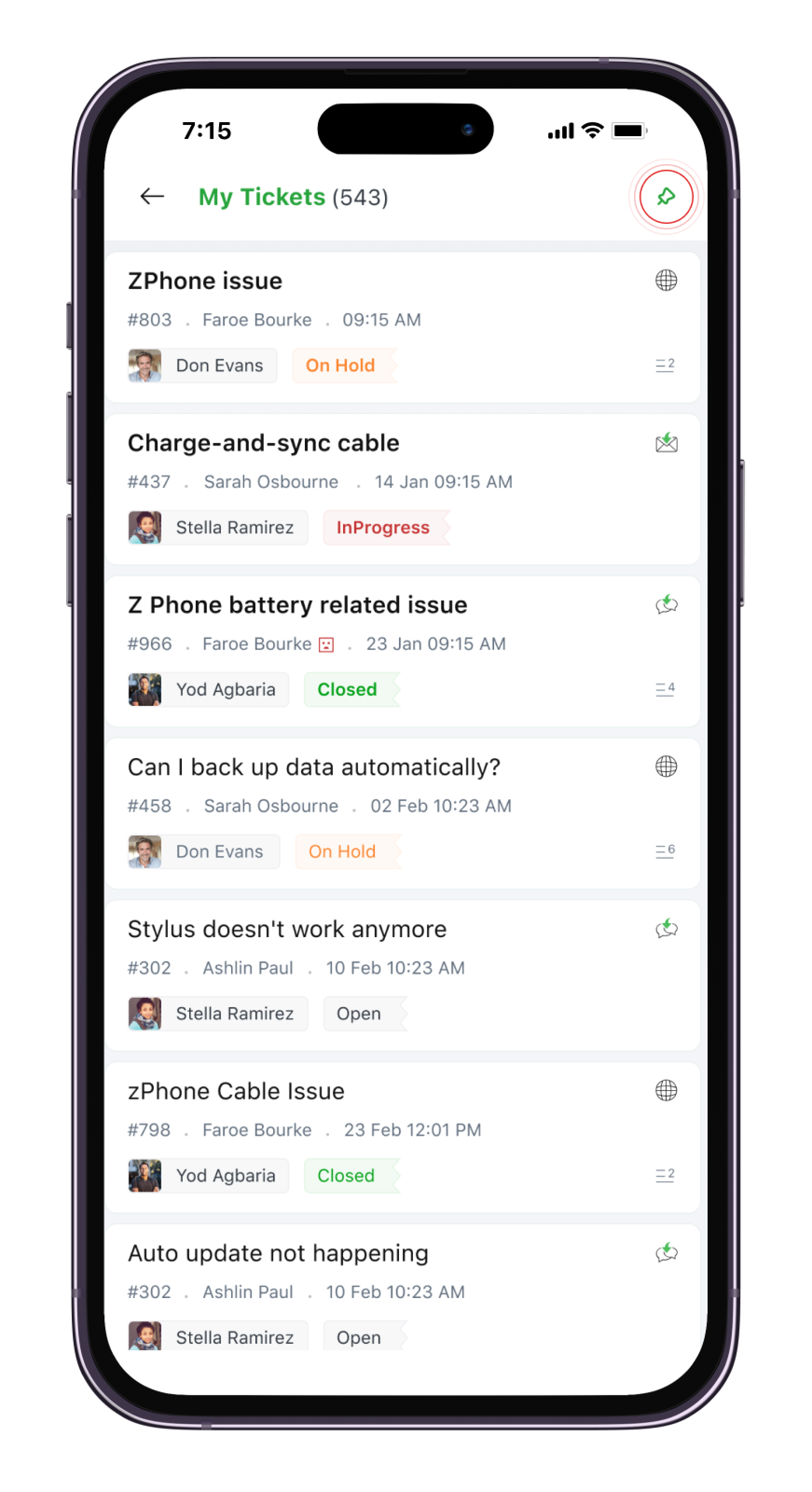 You can pin complex tickets that you frequently revisit or the ones you want to read later for quick access.
