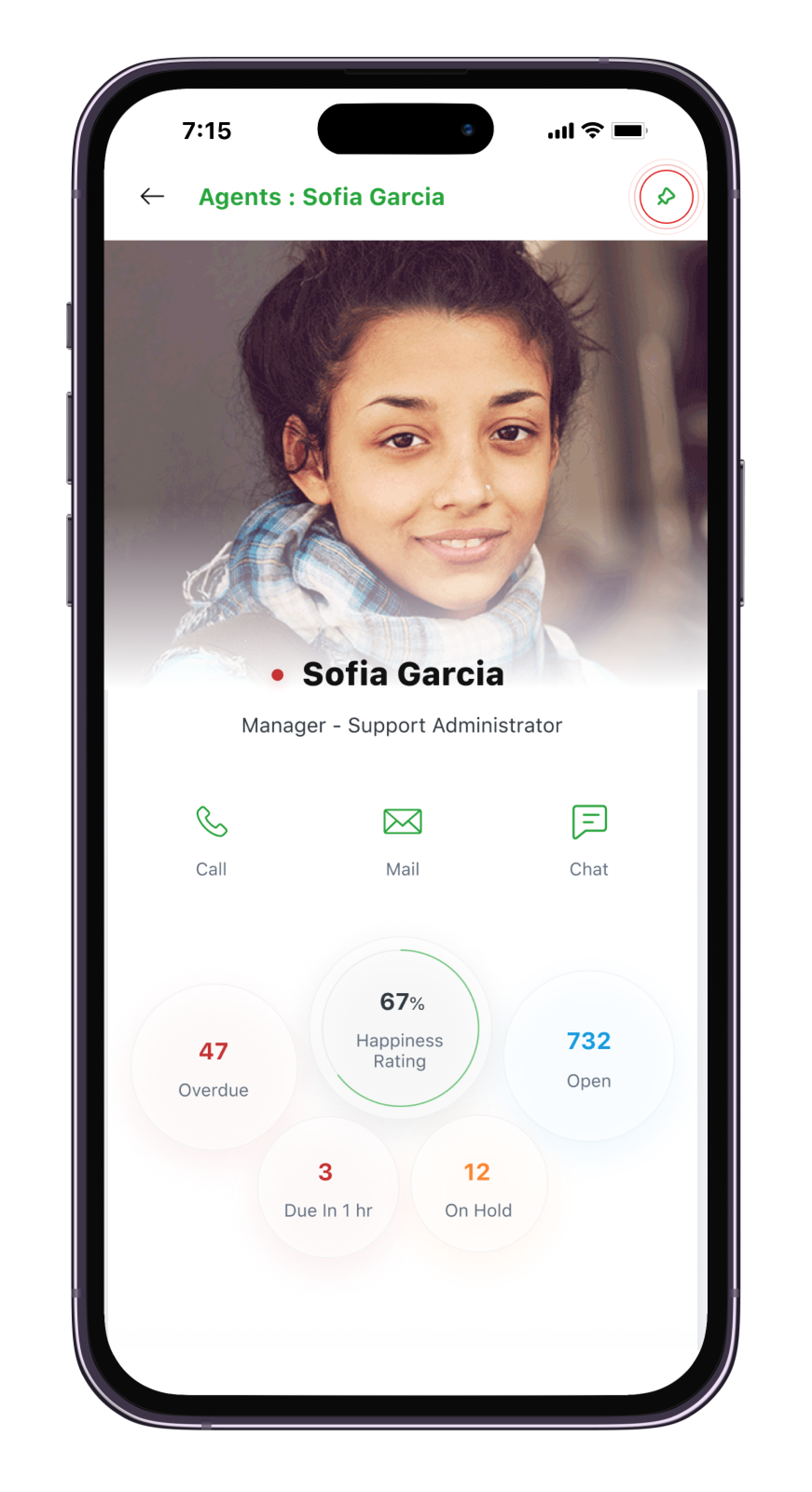 The agent card displays the basic details of an agent along with summaries of their stats and key performance metrics. If you're closely monitoring a specific agent's performance, then pinning the agent card will be beneficial.
