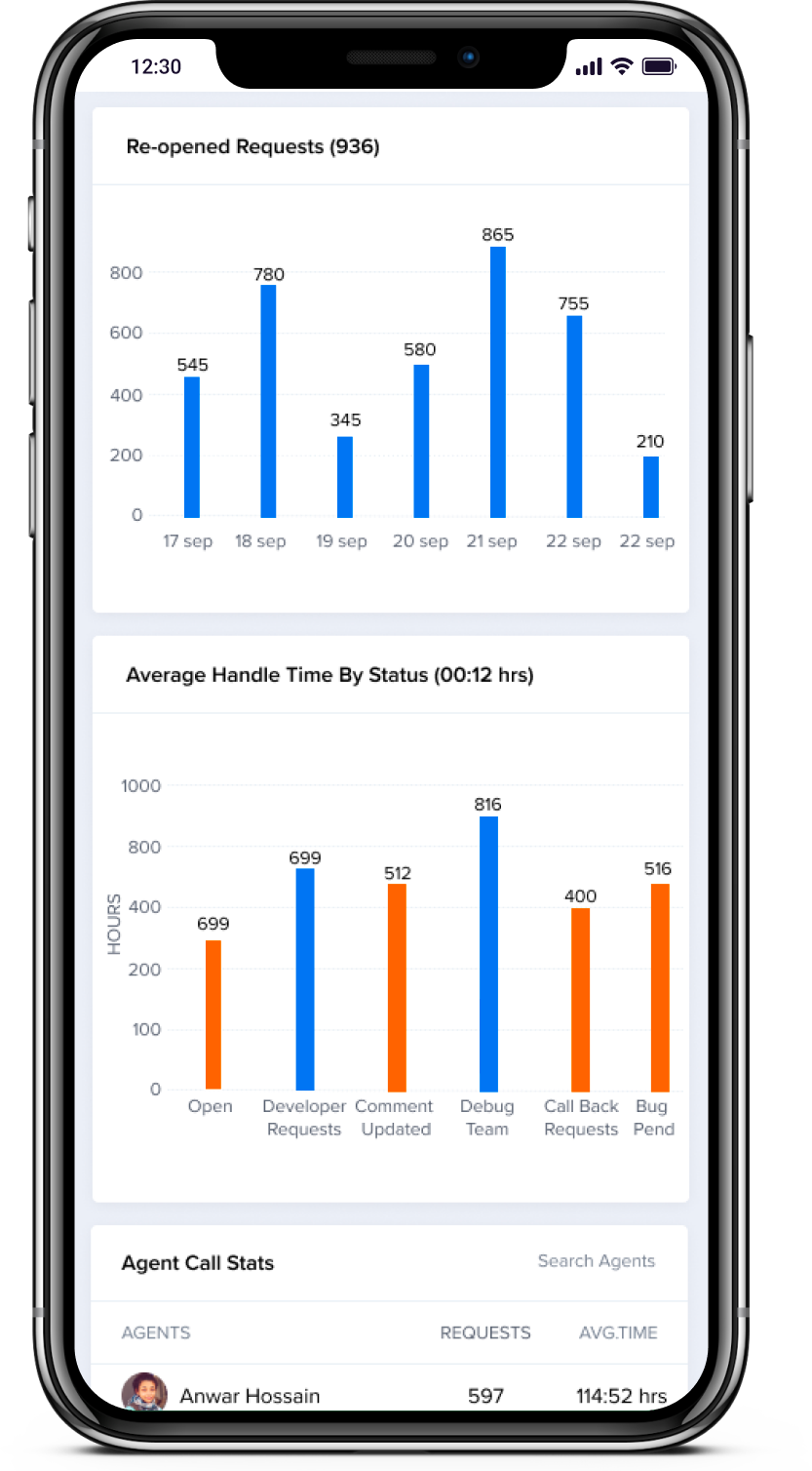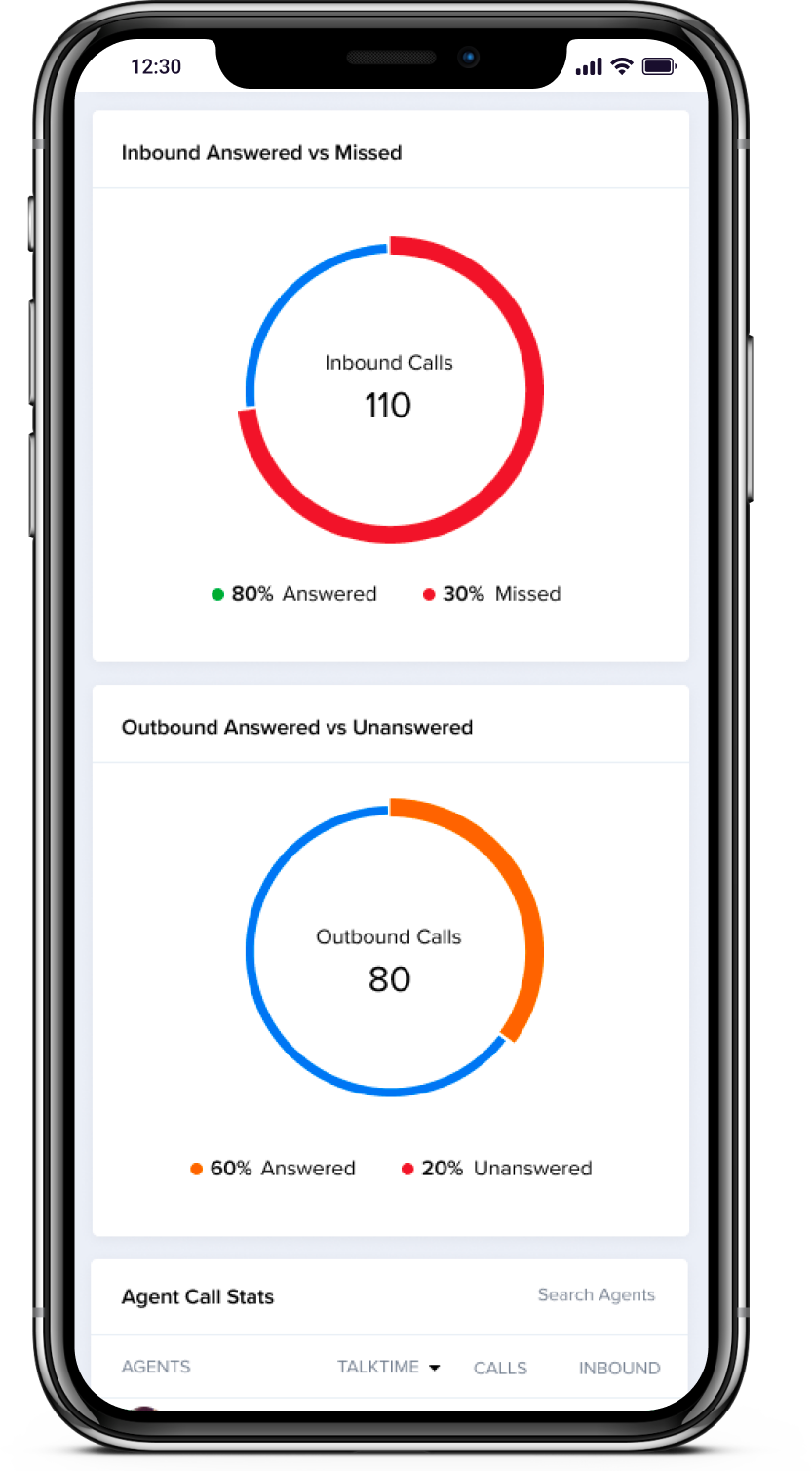 Agent call stats | A tabular view of the number of calls associated with an agent, the number of calls they accepted (inbound), the number of calls they made and the overall time they spent on calls (talk time) | Monitor your phone agents performance. |