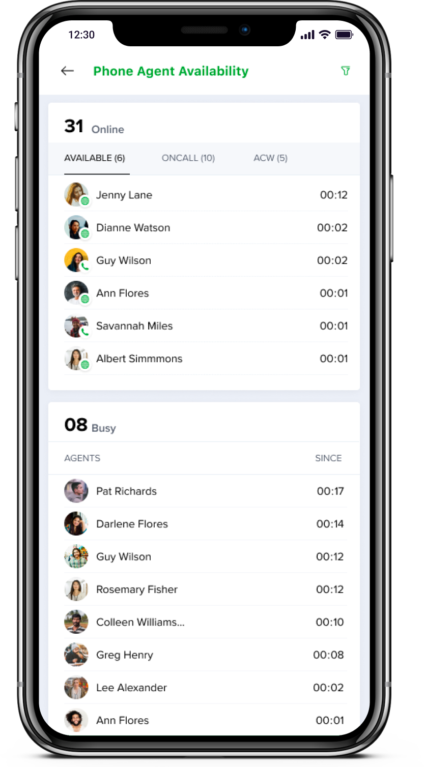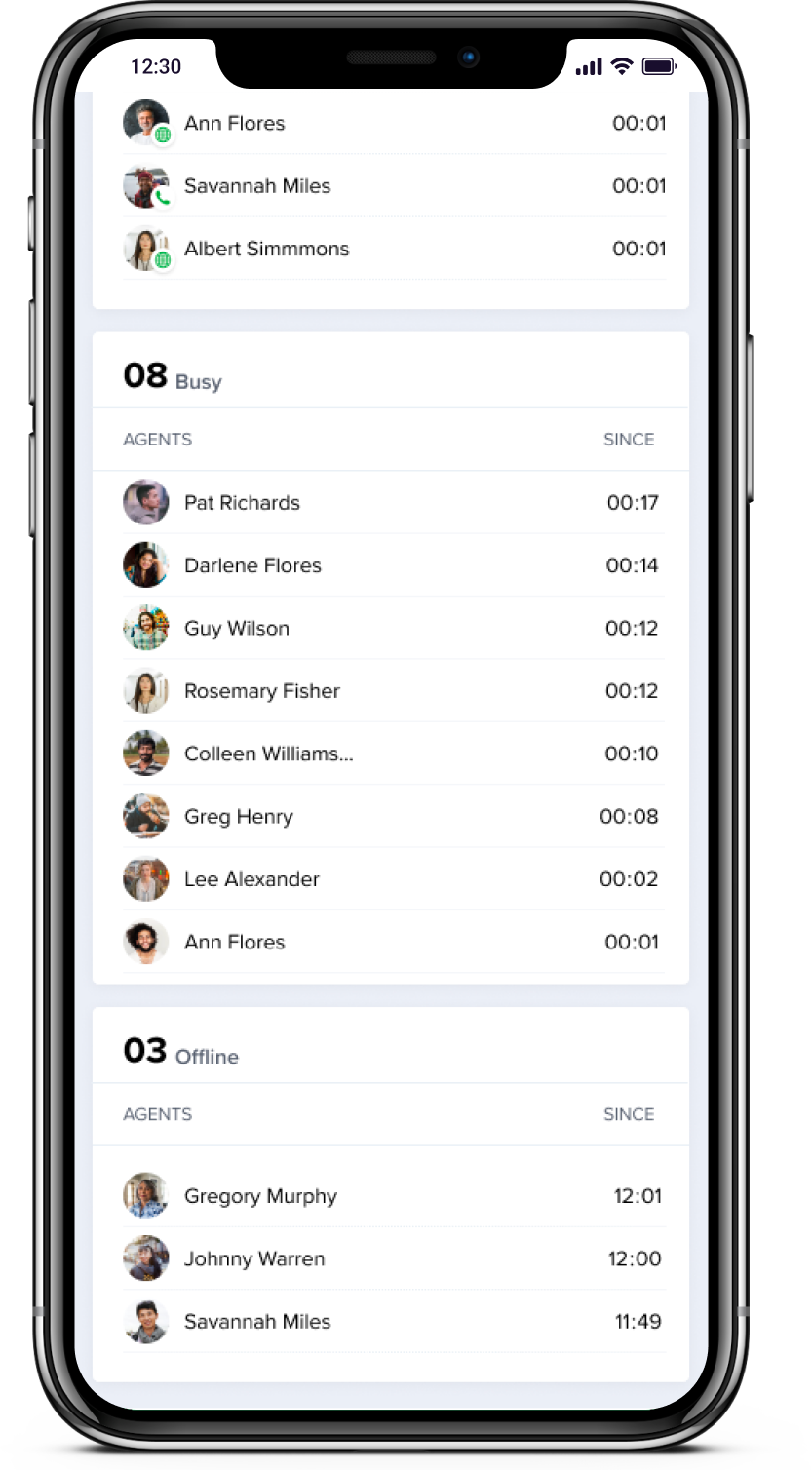 Busy | A list of agents who are engaged on calls and how long they've been in that status. | Know which agents are unavailable to take calls. |