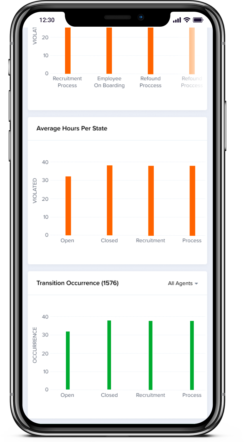 SLA violated states | A bar graph to depict the number of times each blueprint state violated a state-level SLA. | Discover which blueprint states that act as bottlenecks in your process. |