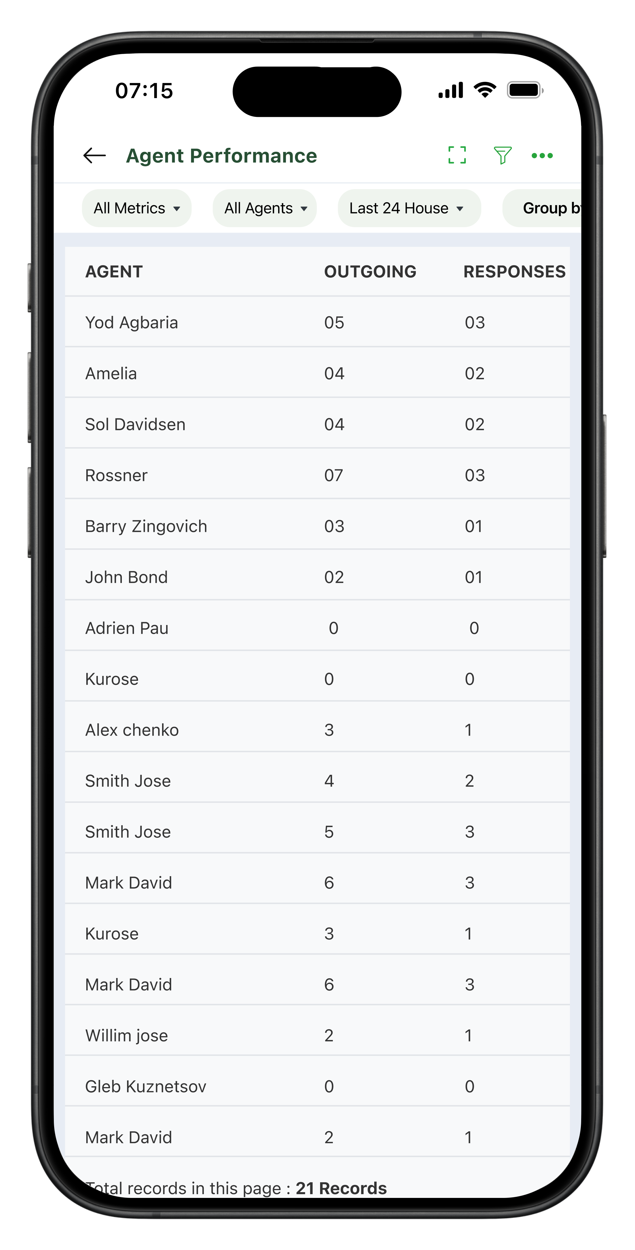 Agent performance report
