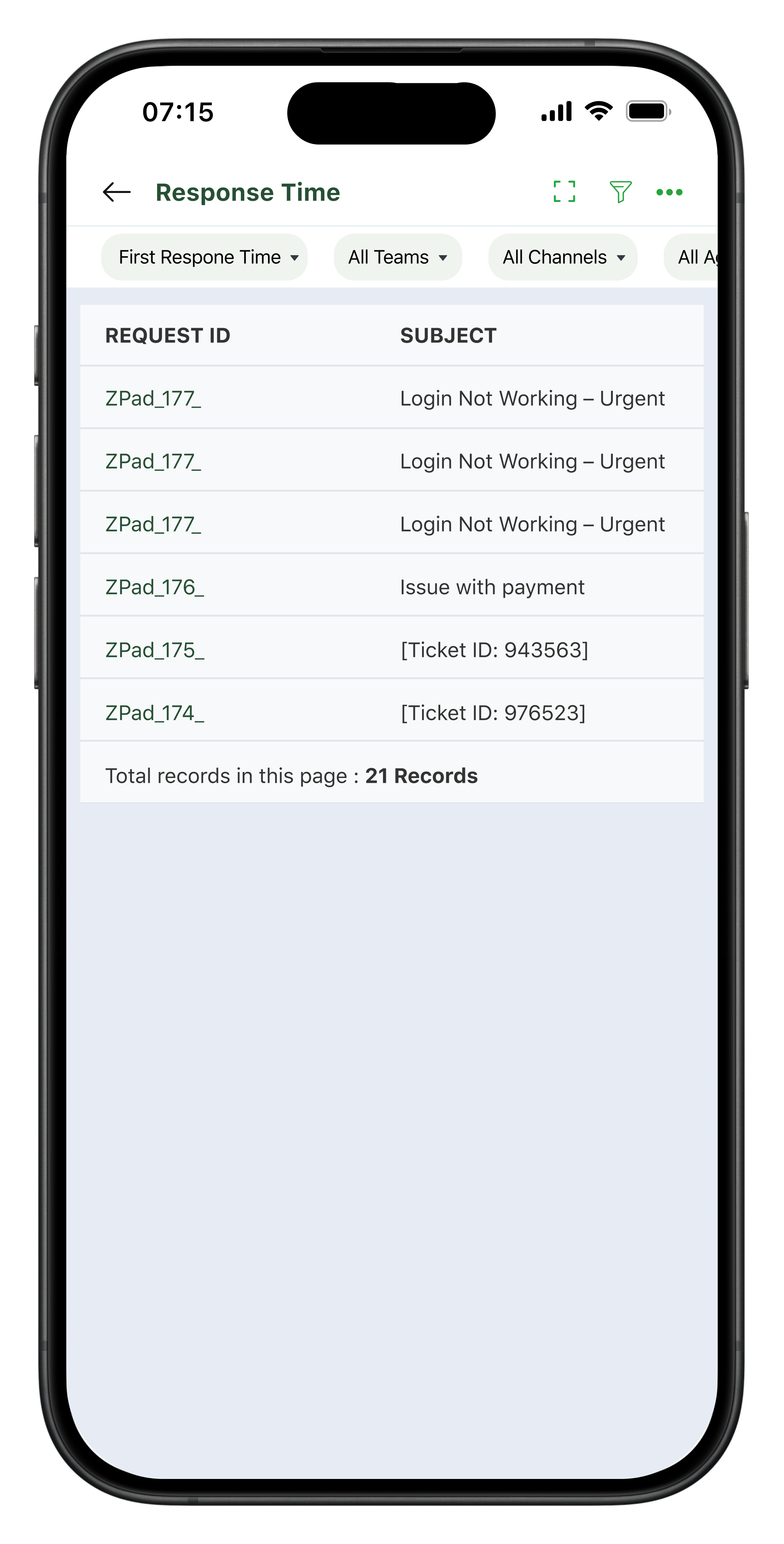 Esme is a support manager at a telecommunications company. An unanticipated break down of their cell towers causes temporary connectivity issues. This brings a large volume of queries into their help desk. Esme understands how crucial fast and reassuring replies are in such situations. She uses the response time report to keep tabs on every outgoing response and personally handle any SLA violations. Thanks to her quick thinking and her team's diligence, their customer happiness score remained unaffected even in such a crisis.