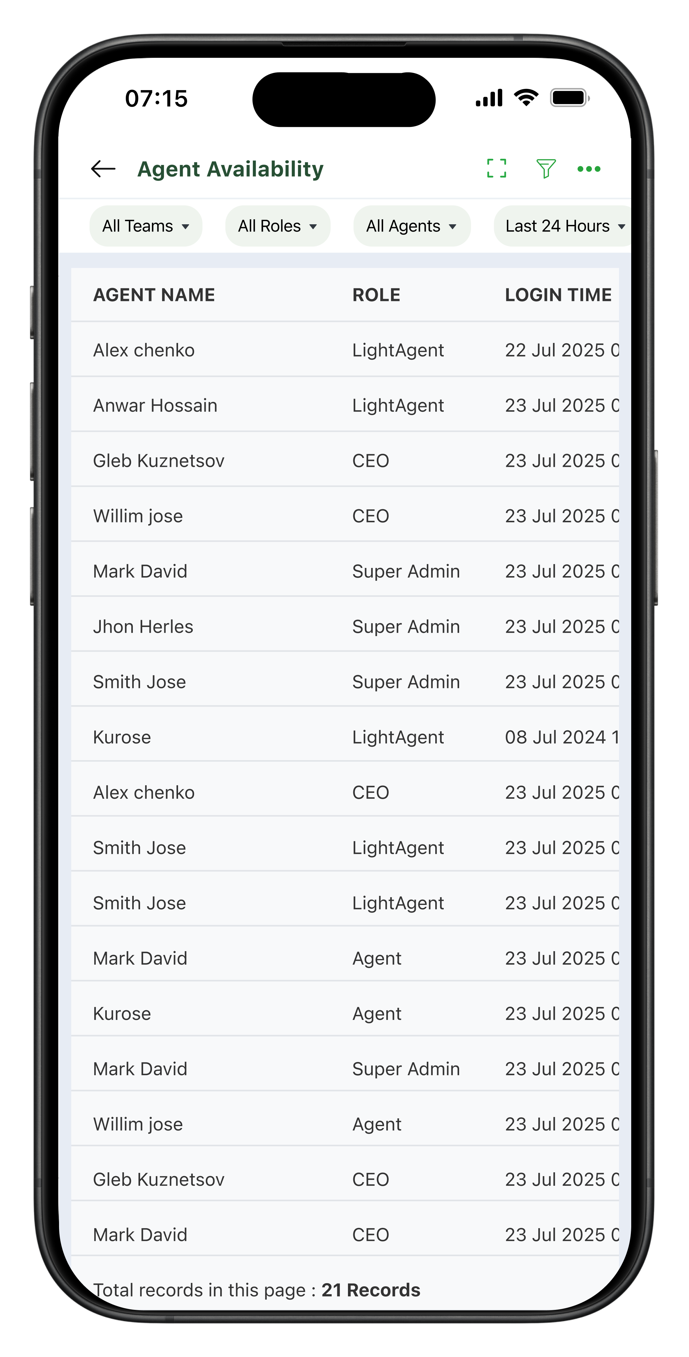 Agent availability report