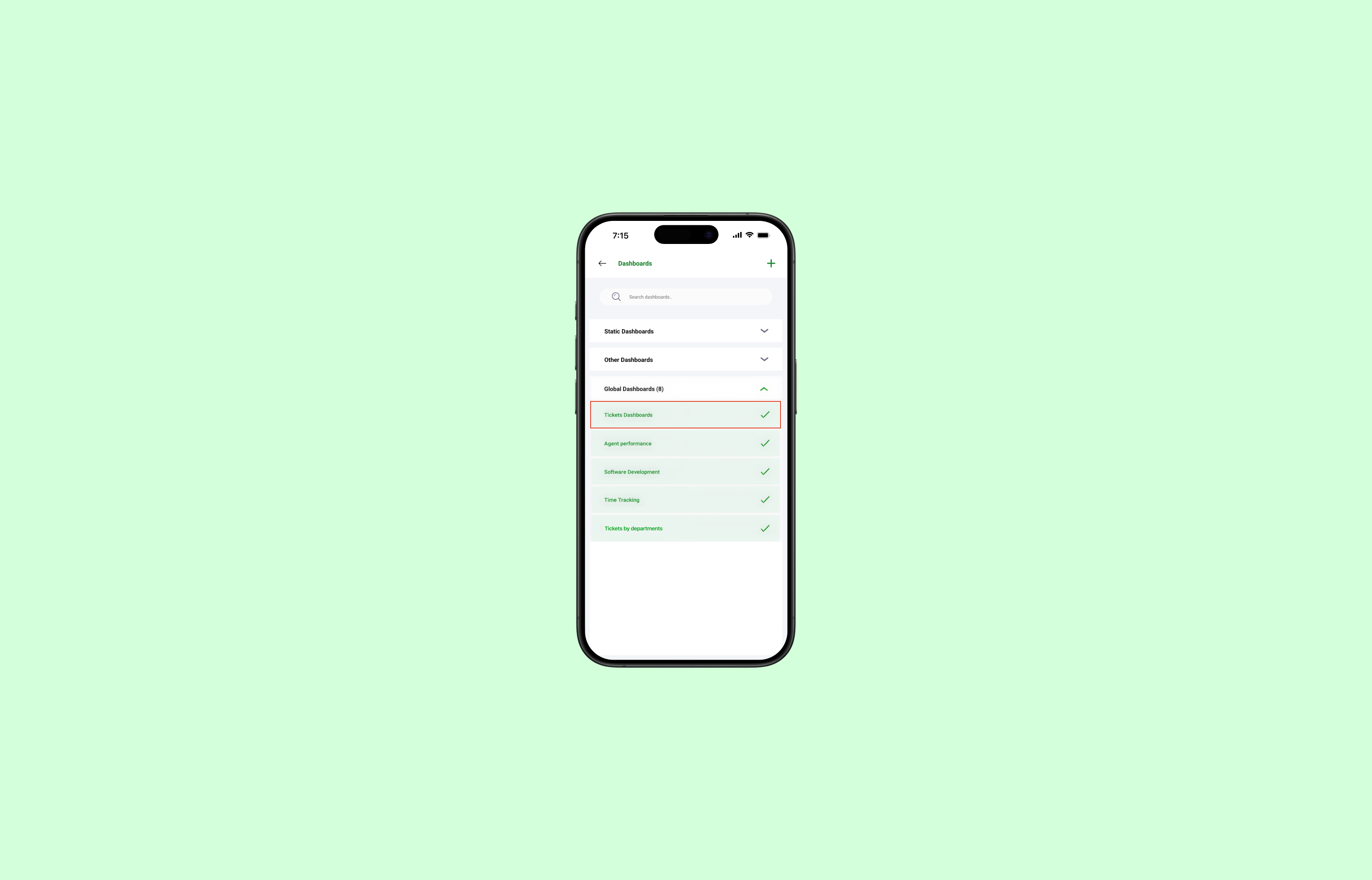 ) in the top-right corner. - Open Global Dashboards and select the Tickets dashboard.