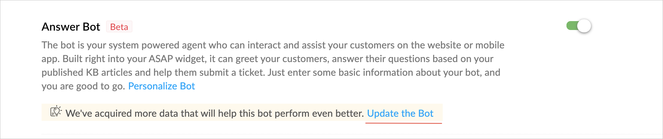 Enabling Answer Bot is a simple process that you can do in a click without wasting much time or effort.