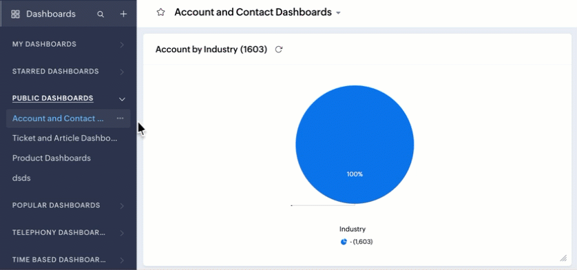 - The Popular Dashboards, Telephony Dashboards, Time Based Dashboards, and Zia Dashboards cannot be starred.
