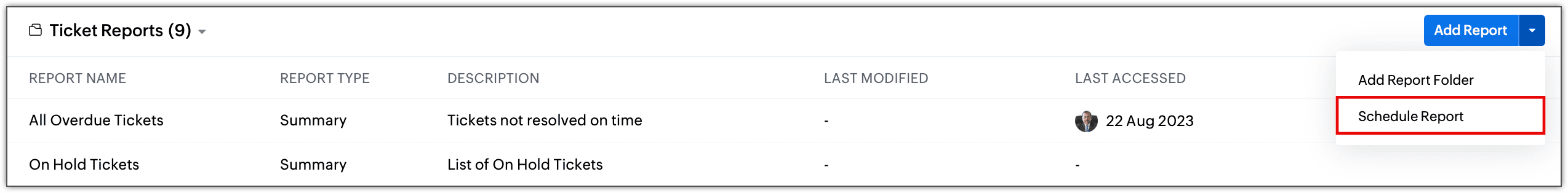 Alternatively, click the Add report drop-down from the top-right and select Schedule Report.