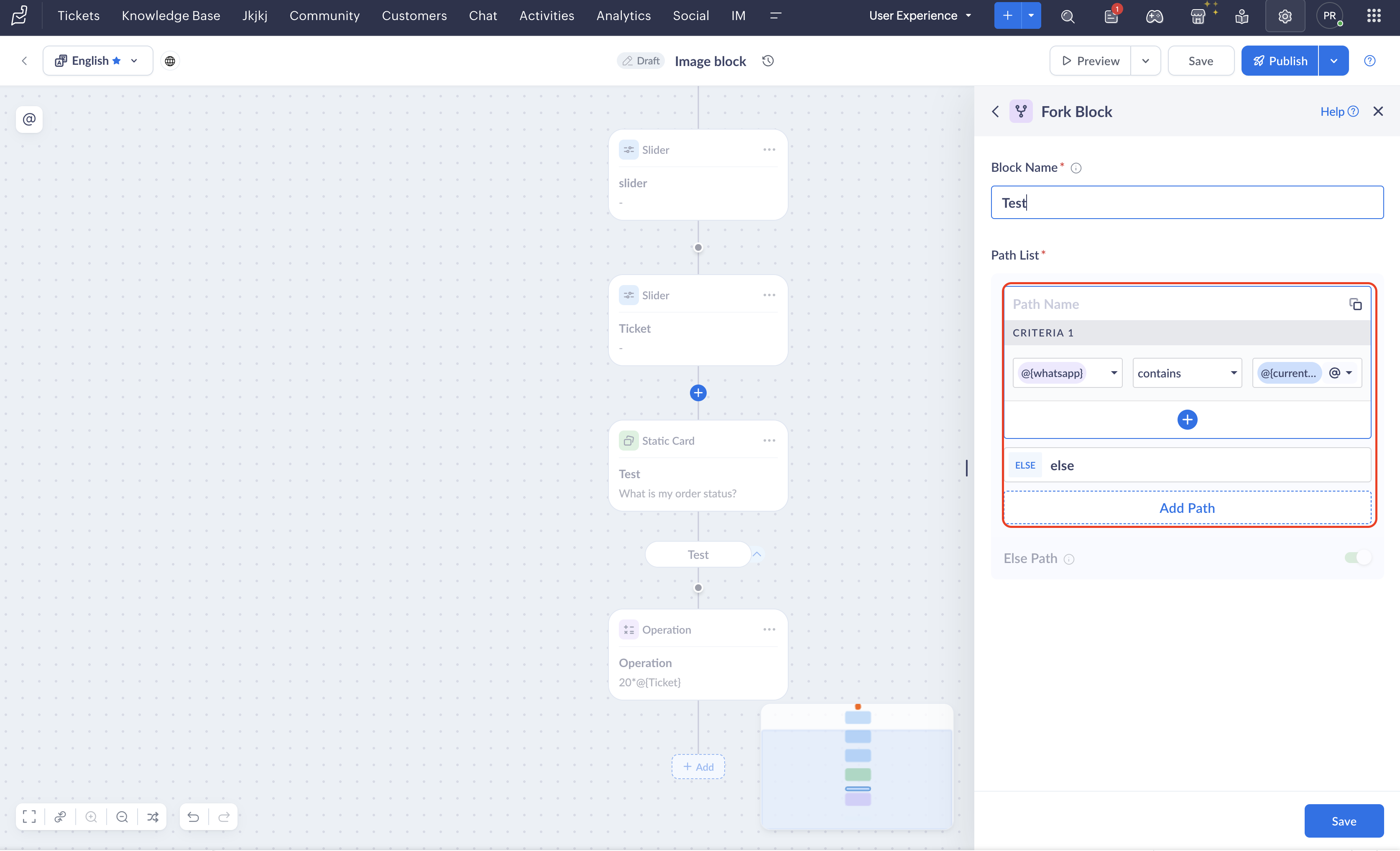 6. Click the (+) icon to add multiple criteria to the same path, if required. You can add the path name as "else" or whatever you prefer.