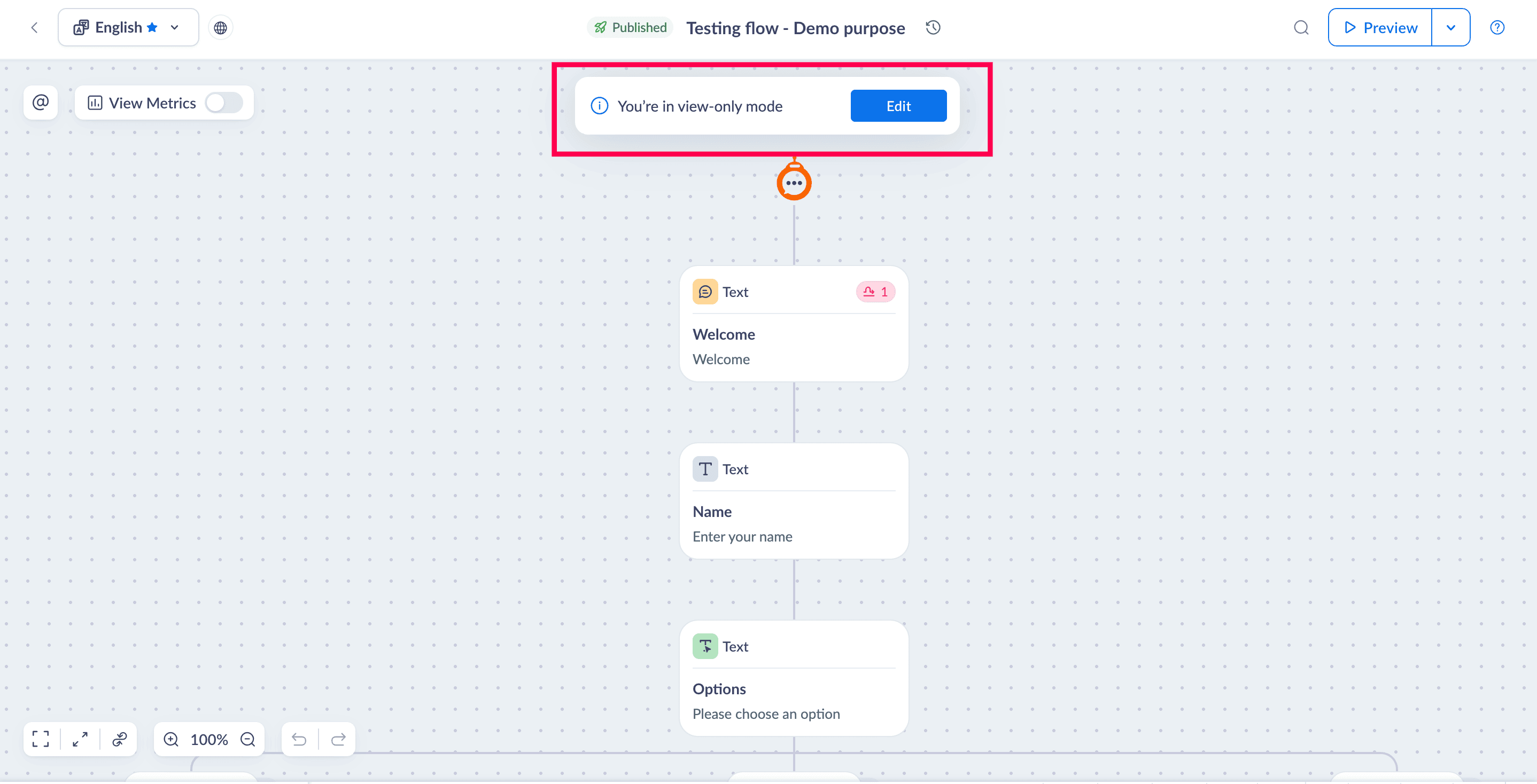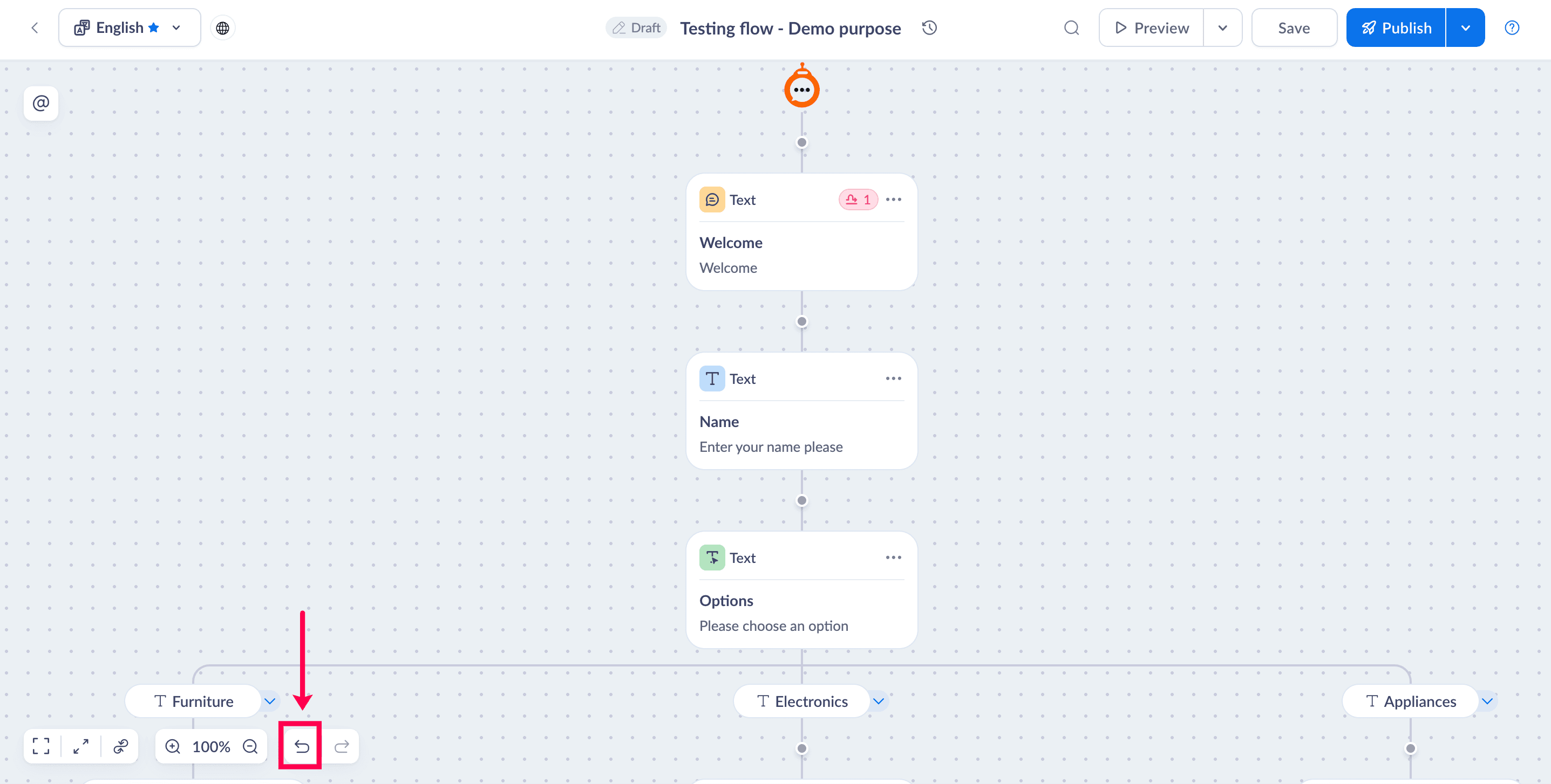 - If you edit a block while an end user is engaged in a live session with the bot, the previous version of the flow will be rendered until they restart the conversation.