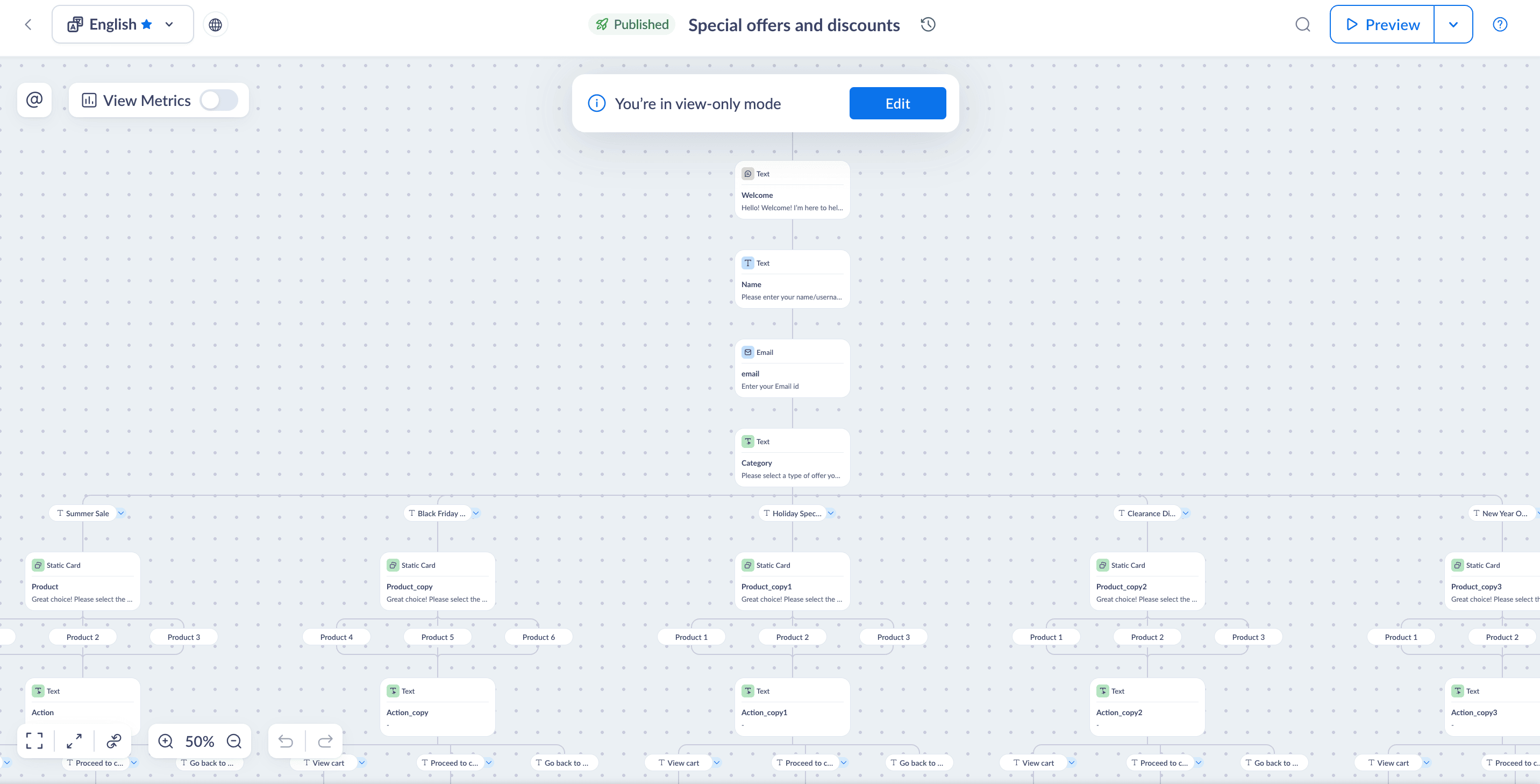 - Flows of different sizes catering to different business scenarios will ensure the bot meets specific business needs and user expectations no matter the size of your organization.