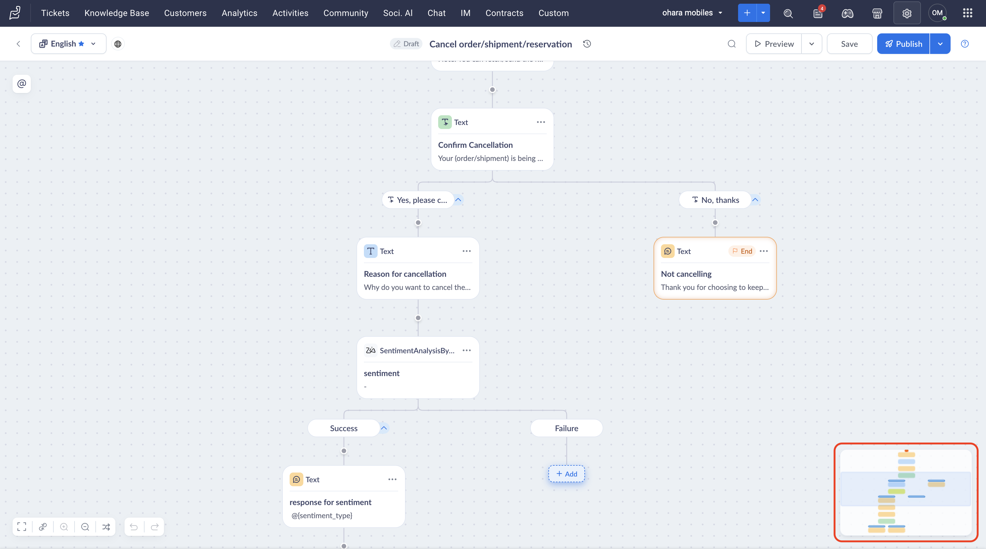 - Based on the customer’s responses, the conversation navigates through the designed flow to provide relevant information or assistance.