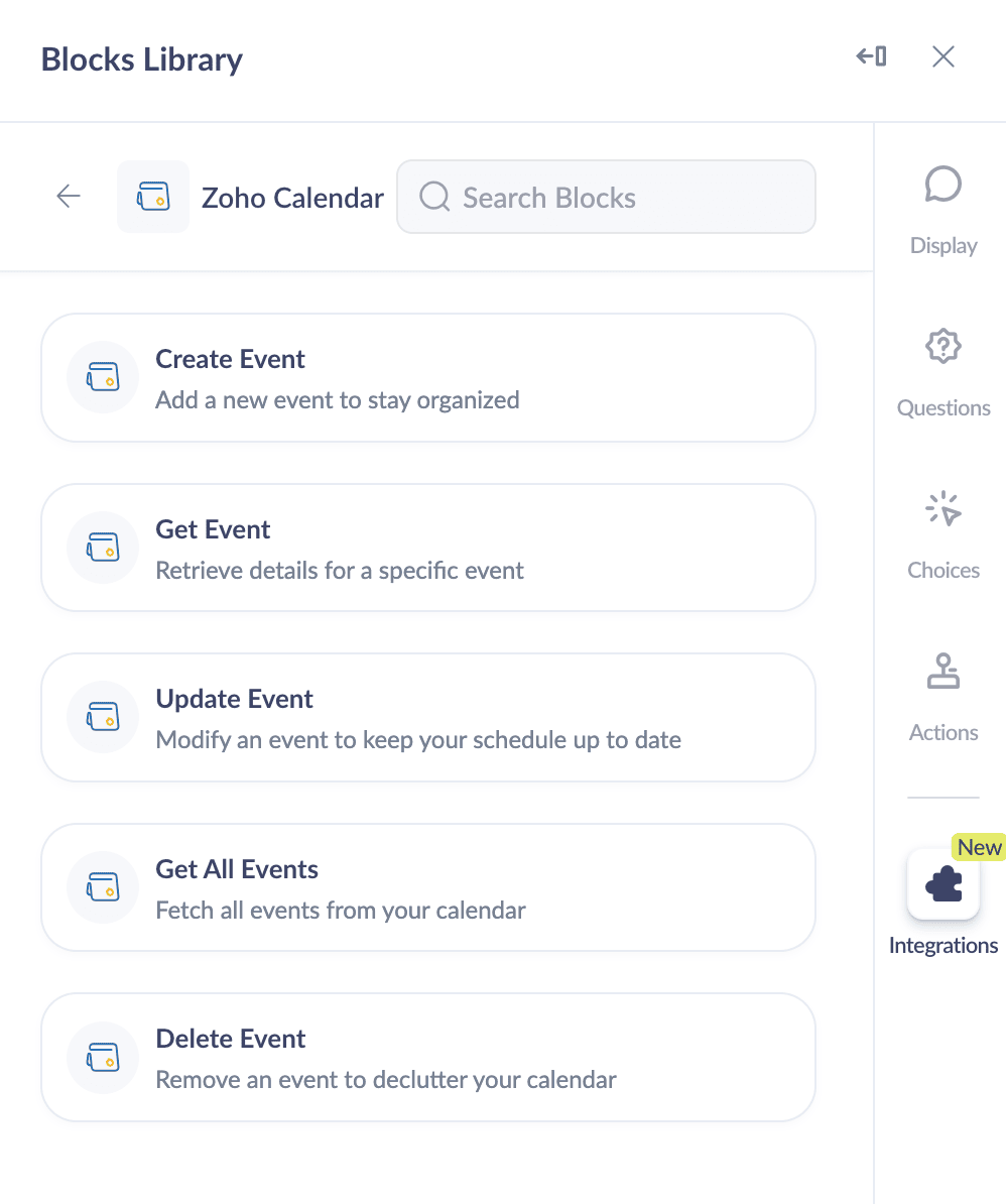 The Zoho Calendar Integration block (formerly known System Blocks) simplifies connecting your calendar to GC in Zoho Desk. By transforming complex webhook configurations into reusable blocks, this feature allows you to manage and automate calendar events effortlessly. This guide explains how to use Zoho Calendar Integration blocks effective in your GC.