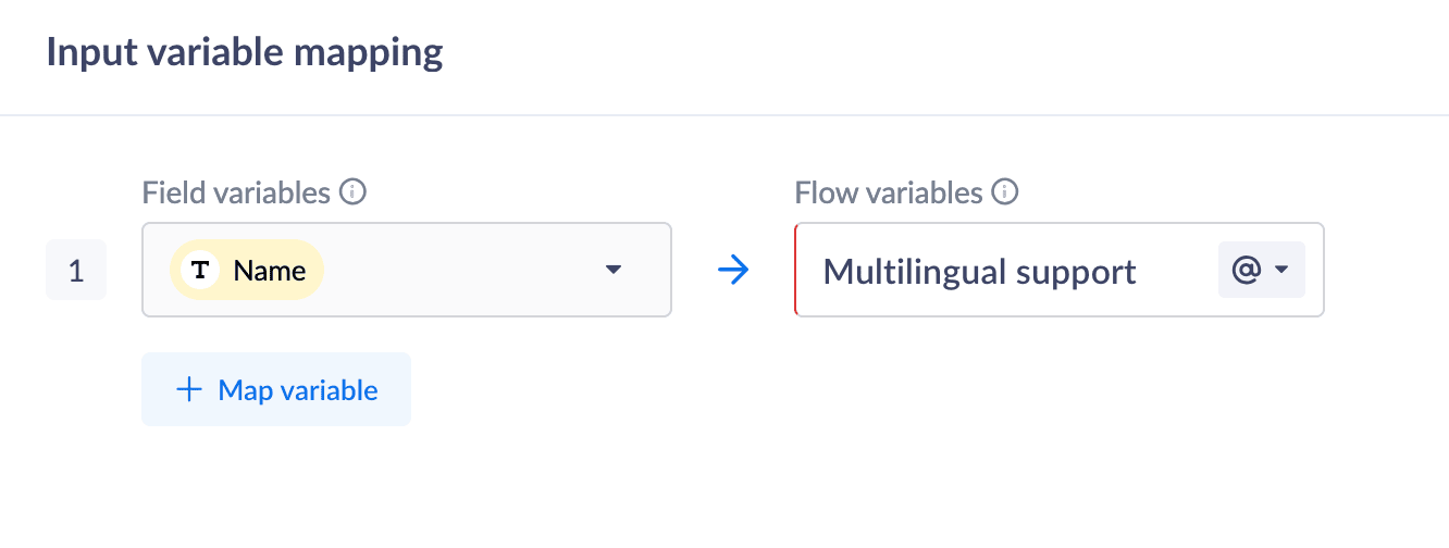 Input Variable Mapping enables the transfer of user-provided or manually entered data to Zoho Projects, ensuring a relevant response. This is accomplished by mapping flow variables to corresponding Projects variables.