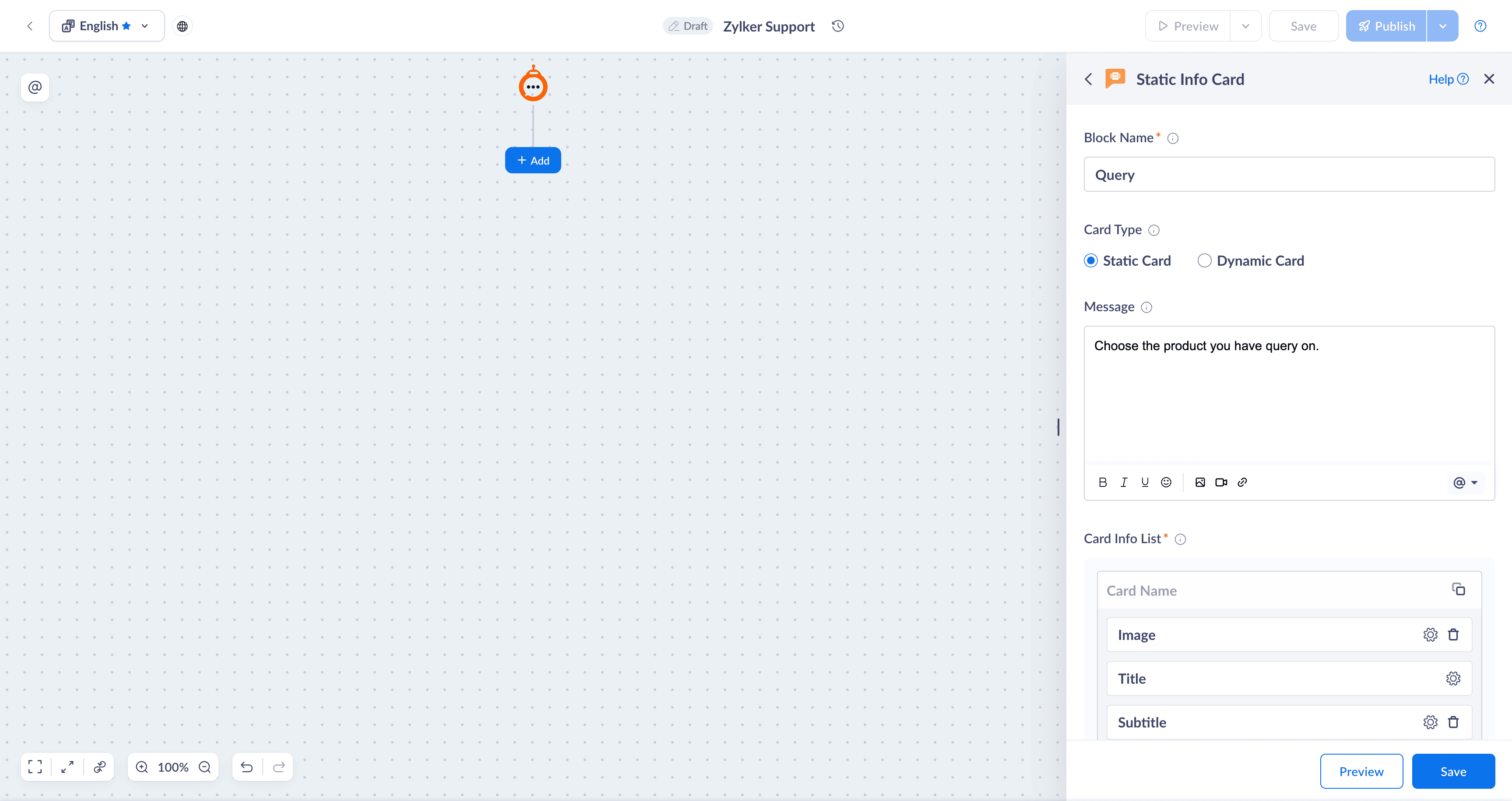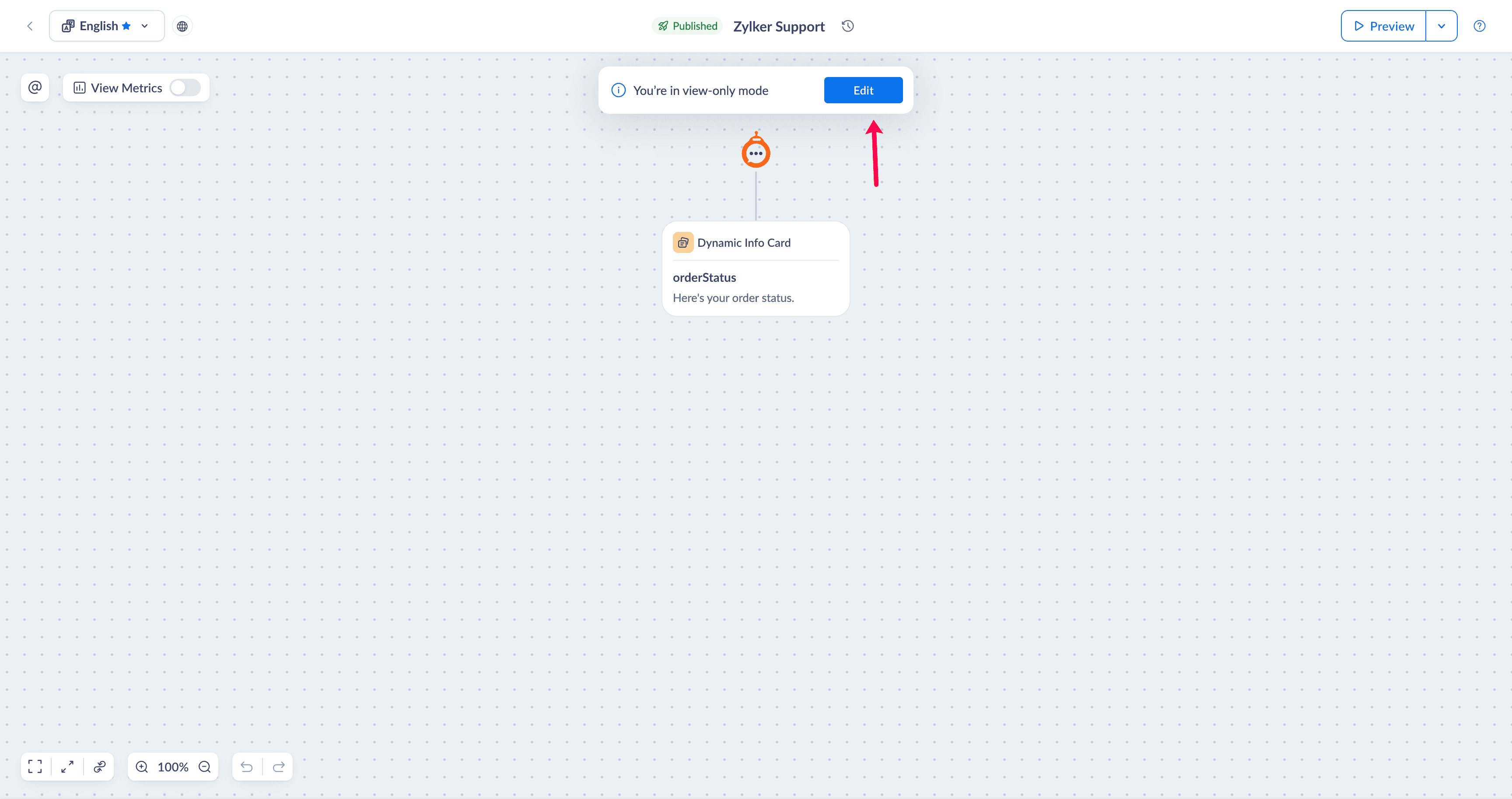 You can edit an info card whenever required, even after the flow is published or in the drafts section, by following these steps: